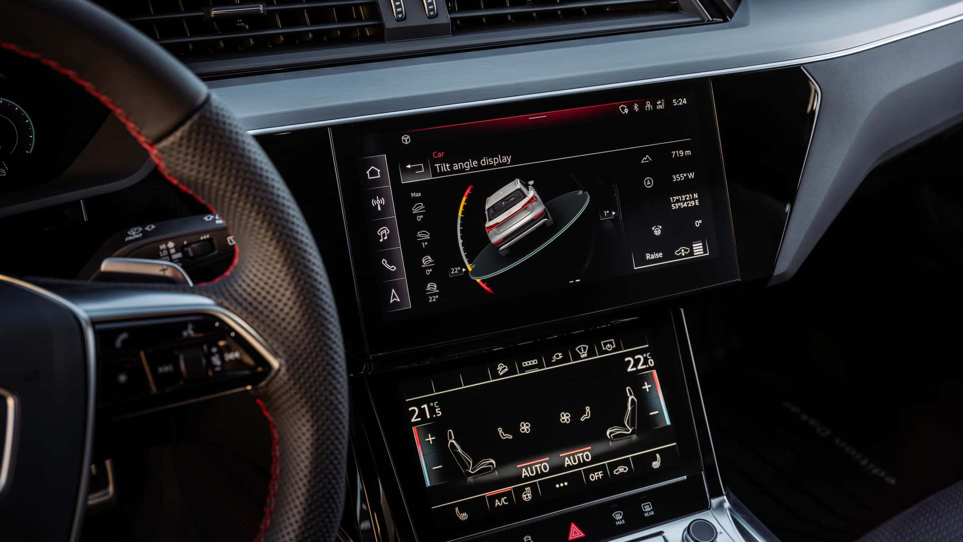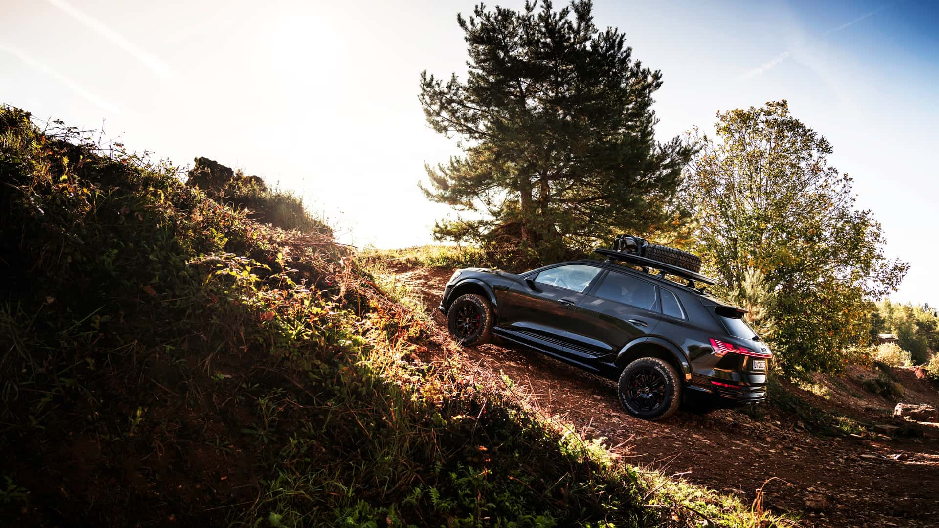 儘管M-Benz還有幾個月才會上市純電動版本G-Class,而Audi則搶先一步,以Q8 E-Tron為基礎,進行輕度越野的調整,將搭載原廠升高套件。除此之外,輪胎更換General Grabber AT3全地形輪胎,比標準版本Q8 E-Tron車型增加約30mm車身高度。不過在不同速度下,其高度最高可達到20mm,但會隨著車速提升逐漸下降。車速達到85公里/小時會降低約15mm,車速來到100公里/小時則下降17mm,車速高達120公里/小時則下降約13mm。