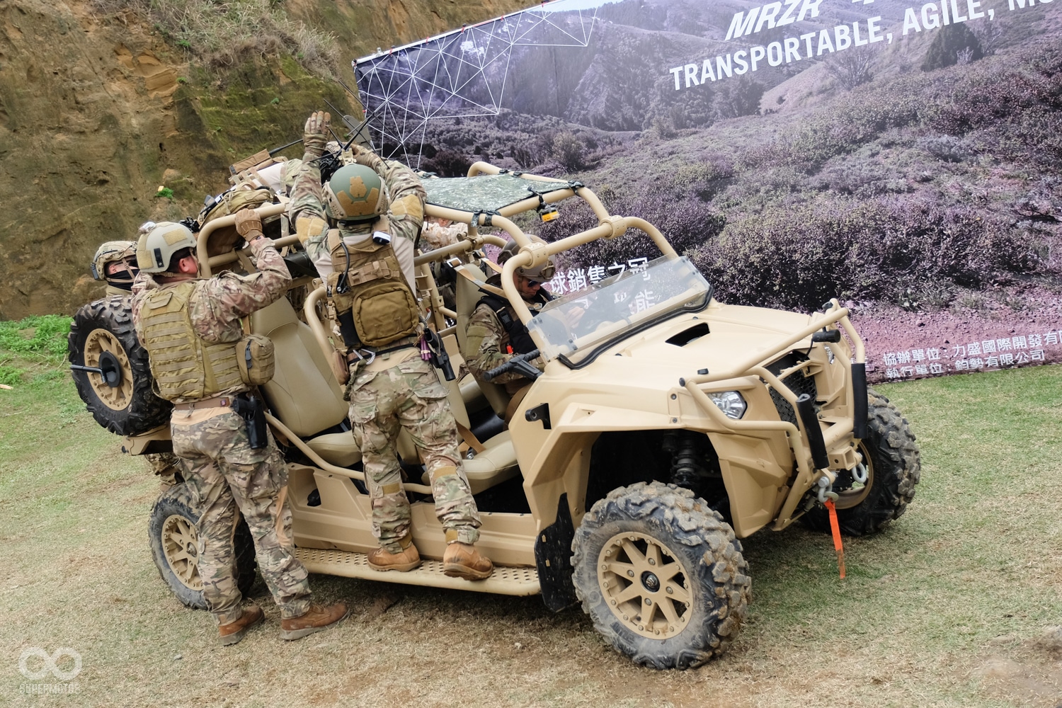 MRZR 4是Polaris旗下Defense部門所生產,最新款的軍用全地形車,除了擁有極其優異的越野性能,能夠輕易的突破險各種惡地形,搭配上輕盈的車重以空投深入戰、災區更為容易,加上強大裝載能力與高度靈活性更是讓它在發表之初就被美軍相中,如今已獲得全球20多國採用。