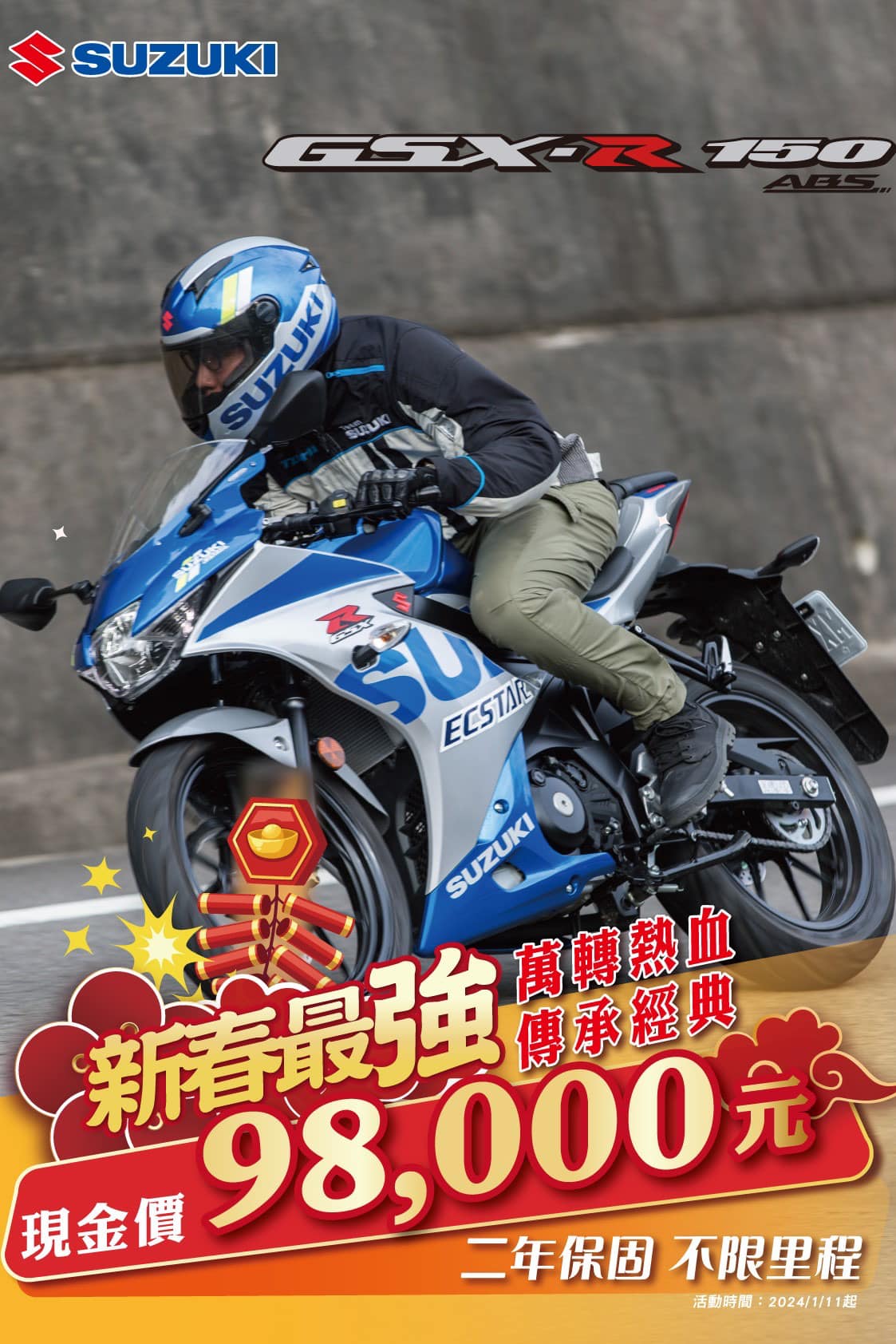 在2024年開春,Suzuki台鈴機車也針對GSX-R150推出超殺的價格優惠方案,現金價98,000元,十萬元有找的價格,配上樂趣十足的騎乘體驗,可以說是2024年最吸引人的購車選項。