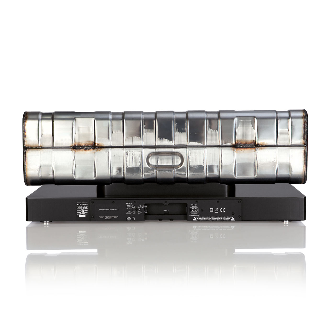 911 Soundbar依照Porsche 911 GT3的尾管造型所打造,最大功率可達200瓦,使用Dolby Audio音效技術,支援2.1聲道與DTS TruSurround虛擬環繞音效技術,創造出如911 GT3一般渾厚紮實的咆嘯聲浪。
