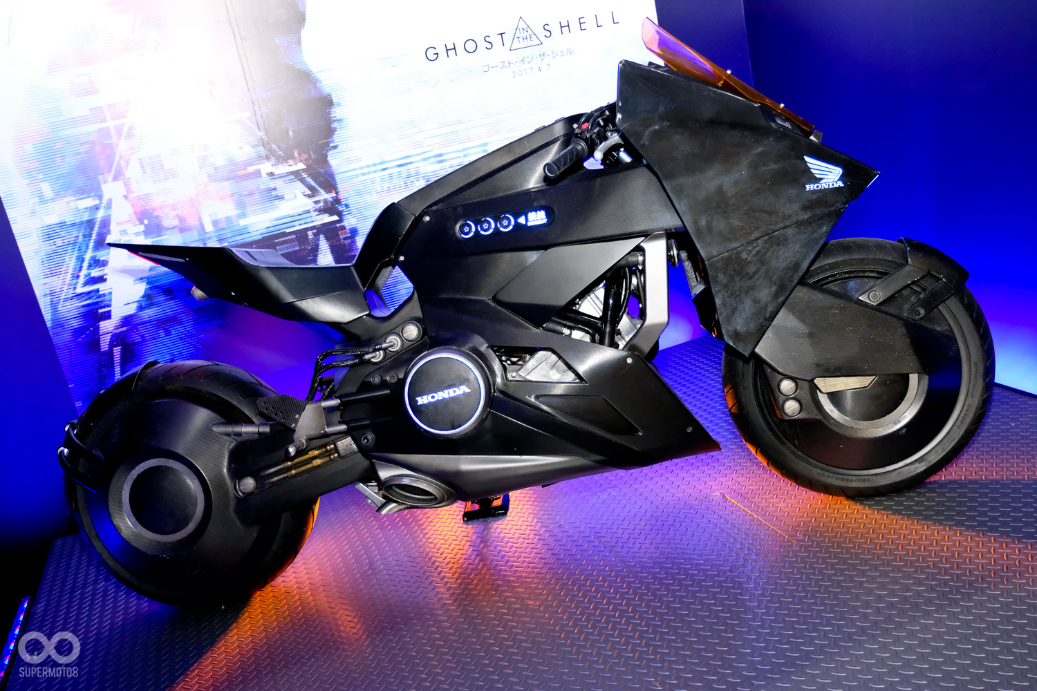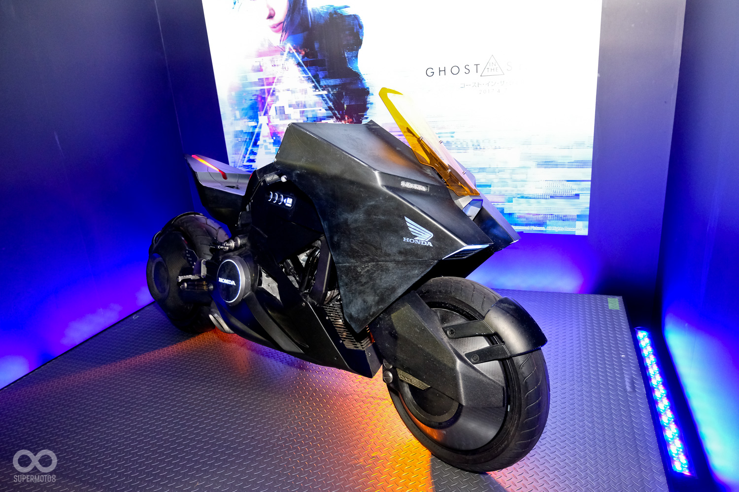 而這次東京車展上,HONDA攤位也特別在側邊設置了一個Ghost in the Shell專屬區塊,以黑紫色營造出電影中的科幻氛圍。比較另人失望的是,現場近距離觀看後,明顯感受出道具車的粗糙感。不過在車身比例與科幻張力來說這輛概念NM4確實已經滿足電影需求。