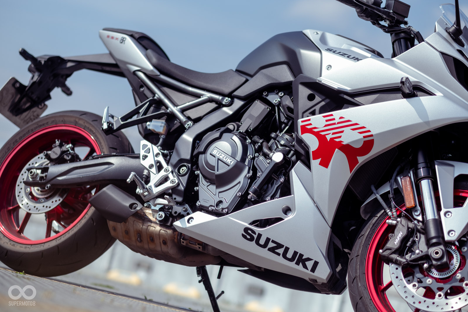 配備部分,Suzuki GSX-8R基本上承繼了GSX-8S的規格,同樣有5吋TFT全彩儀表,但沒有藍芽連線功能,設定介面也相對簡單,只有轉速提醒、進退快排開啟/關閉等細節調整功能;另外GSX-8R也擁有Easy Start System、低轉輔助和SCAS離合器輔助系統。