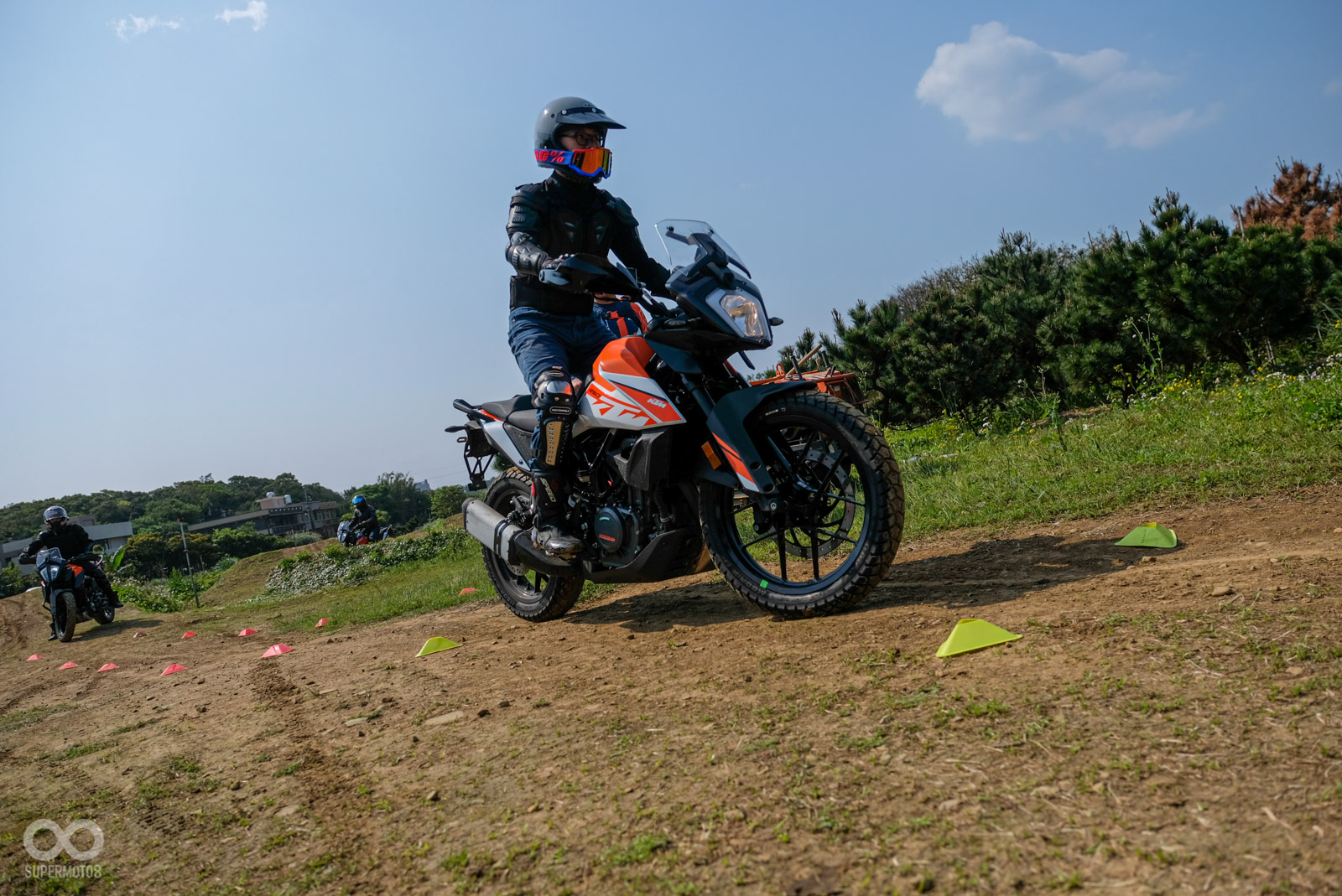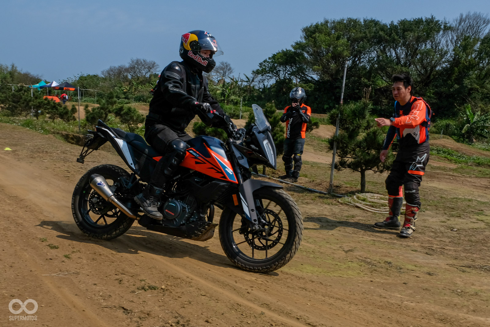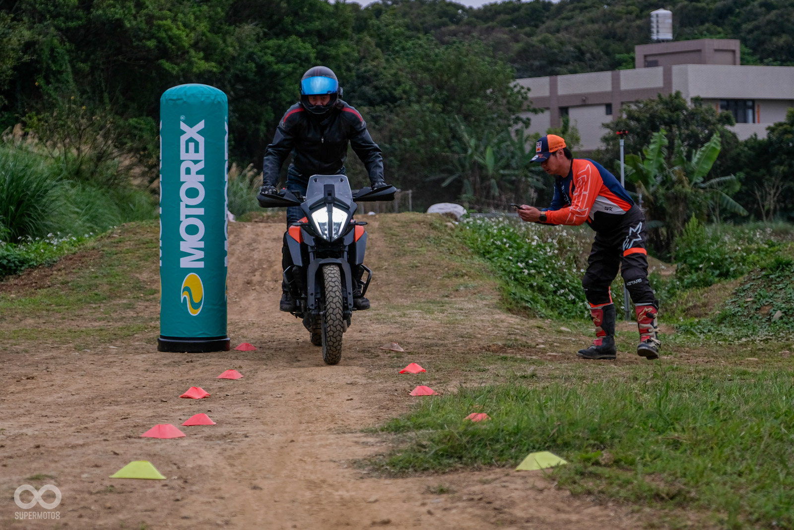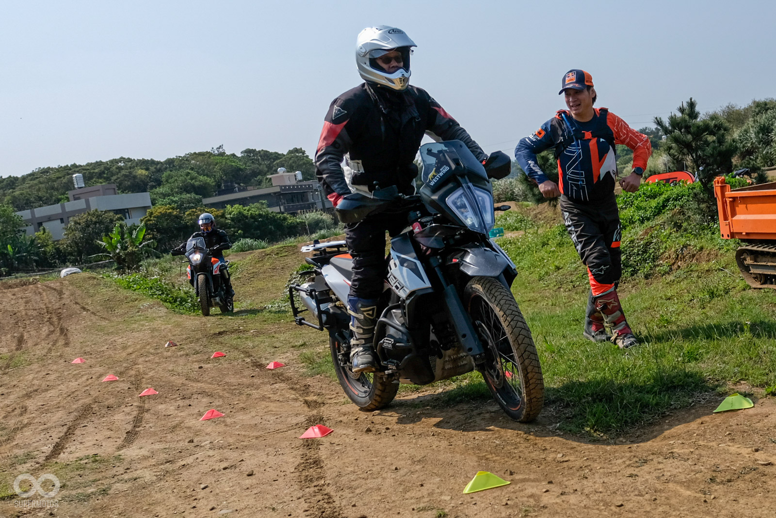 這次活動也對應提升的難度,KTM將場地從水牛坑移師到專業的越野場地進行,活動一開始由教練帶領學員暖身與繞場,主要目的在熟悉車輛,並透過站姿、單側站立等變化熟悉車輛平衡性。