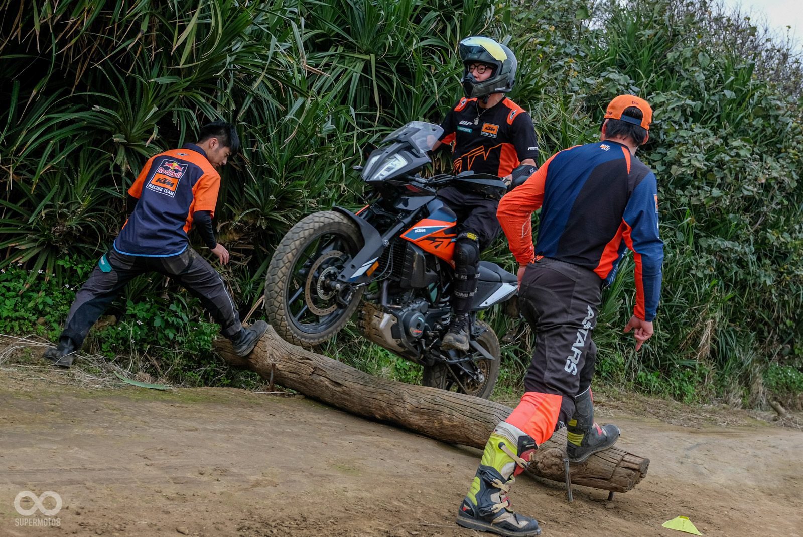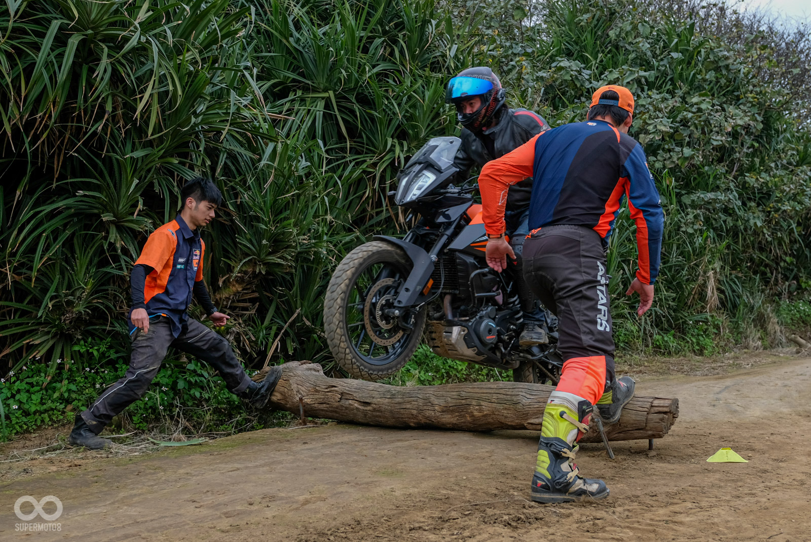 這次的活動同樣延續先前師資團隊,由KTM RIDERS ACADEMY受訓合格的林學誠教官進行教學,不只教練經過專業的越野訓練,在台灣的課程設計也需要依循KTM RIDERS ACADEMY原廠規範,本次來到銀質課程就需要學員練習微孤輪跨越倒木、下坡平衡、後輪轉向等較為進階的技巧,光用聽的就覺得相當難。