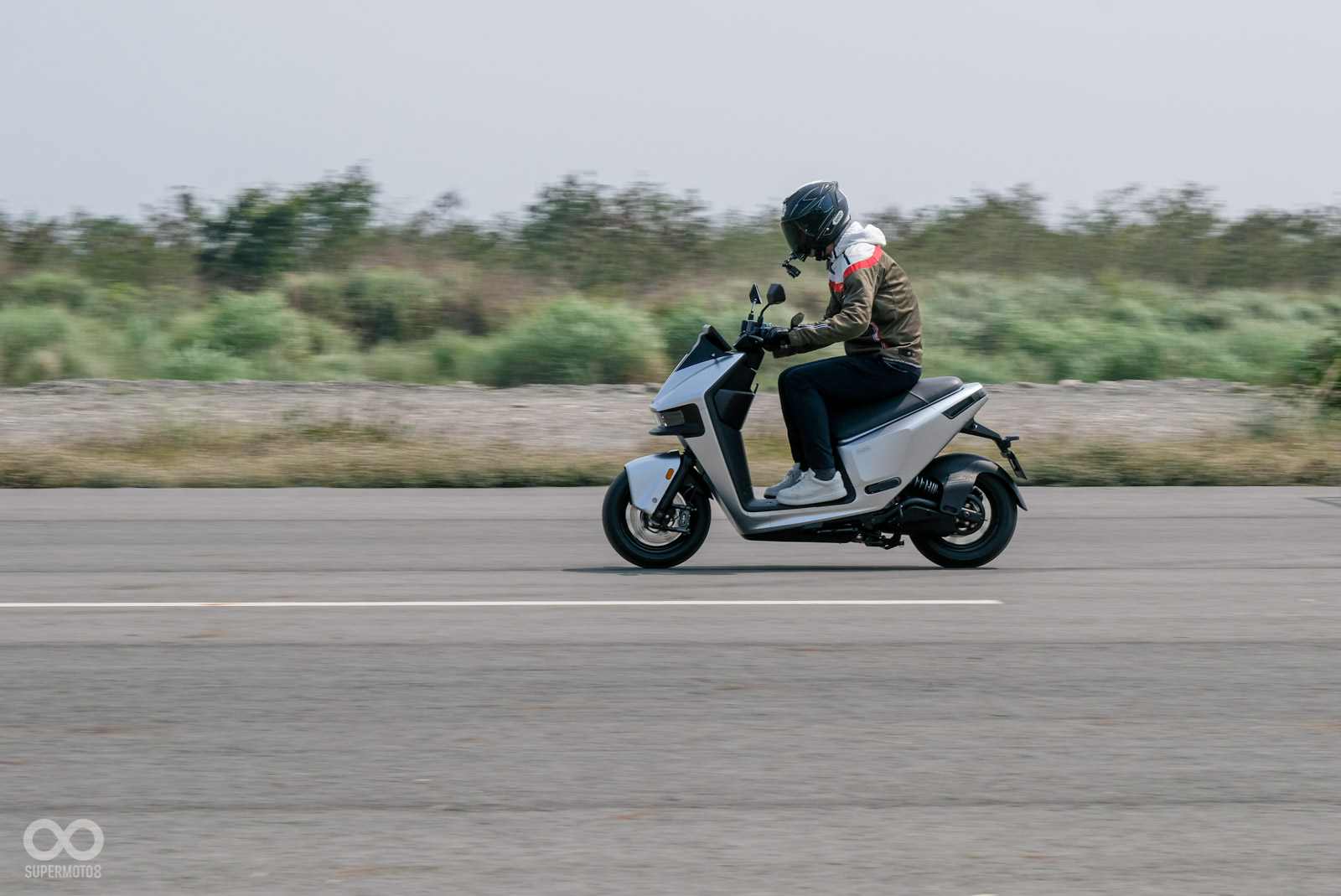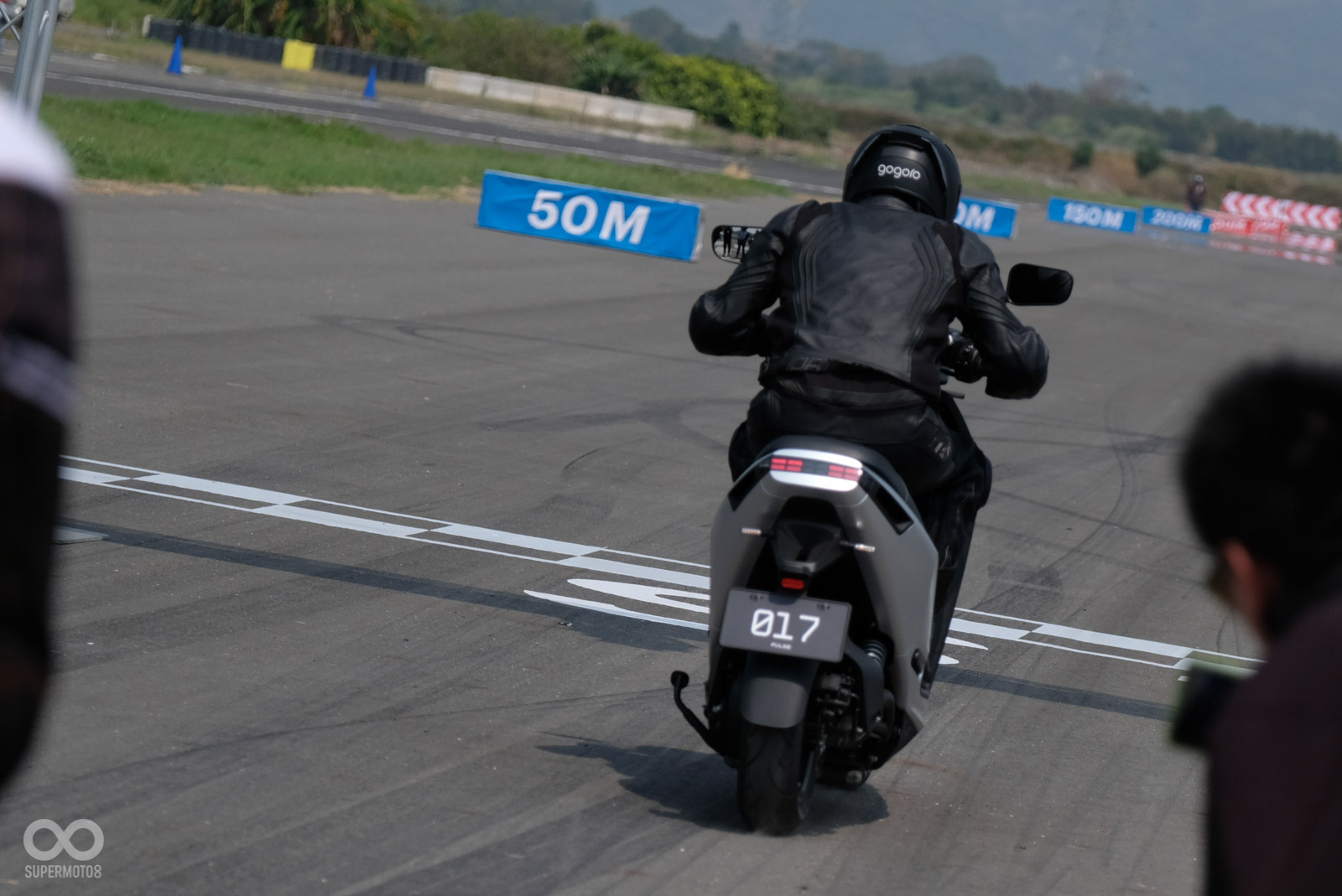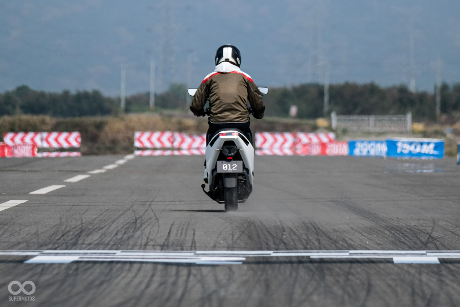 而在體驗中筆者身為 Gogoro 1 車主,可以明顯感受到起步衝出的第一口氣相當驚人,絕對有被踹一腳的加速感受,甚至保持在賽道模式下直接起步,動力也完全不輸大型重機,雖然 12 匹的動力天花板就設定在這,加上電動車的大扭力特性輕鬆產生強烈的起步加速感,但你依舊可以感受到隨著時速表邁入 7 字頭後的加速表現稍微放緩,甚至時速 40/50km/h 左右的再加速,力道明顯就溫和許多。