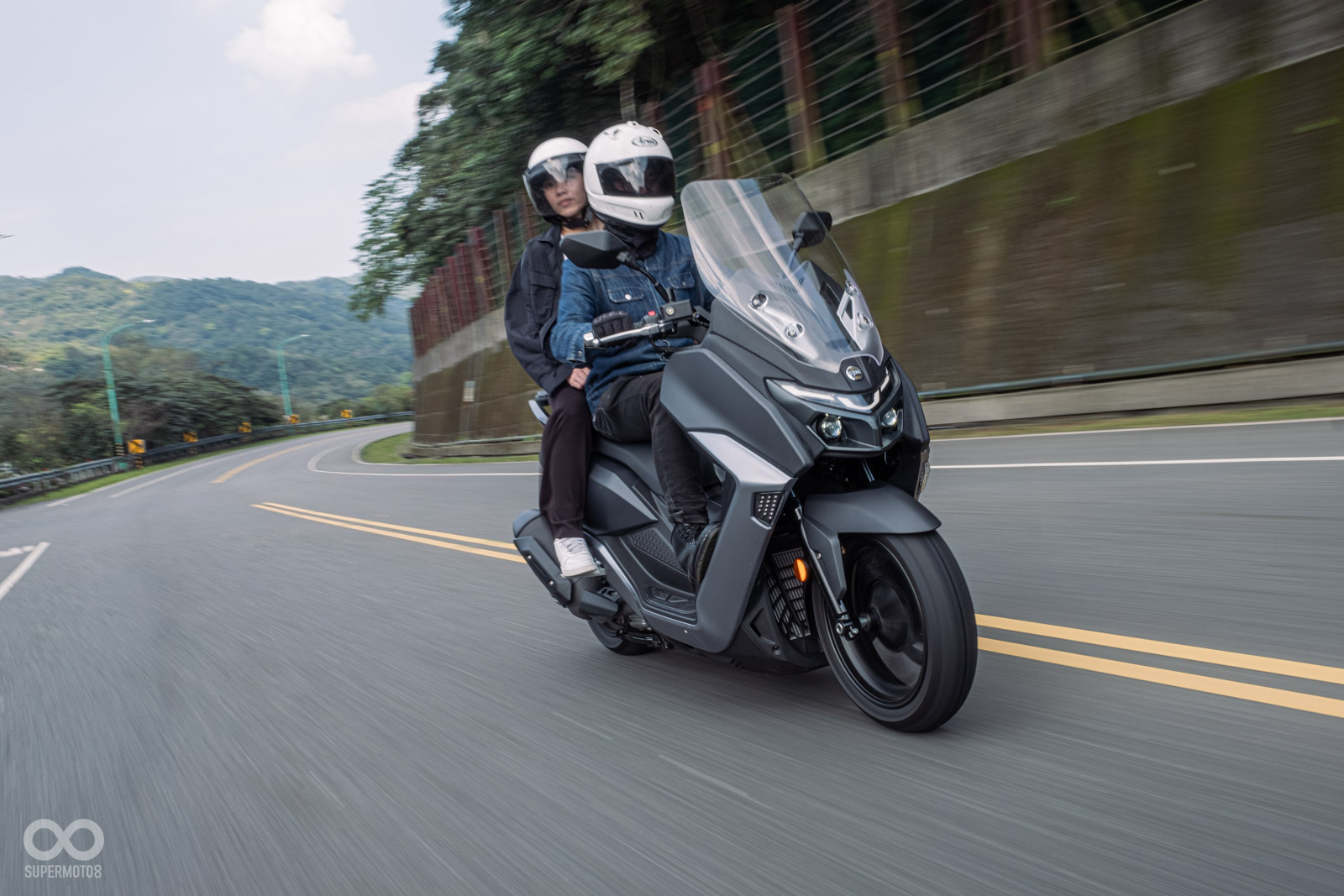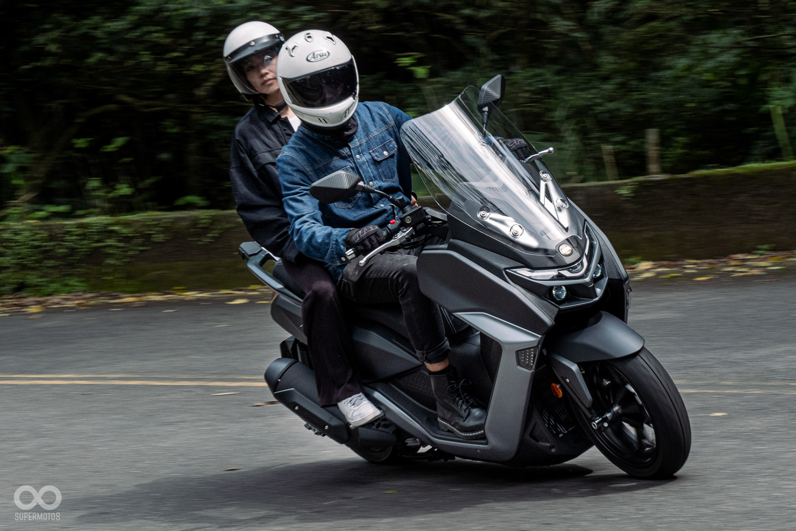 我想應該很多人會關心前煞車的規格調整後,真的夠用嗎?MAXSYM GT動力輸出相當飽滿,基本上對應市區或山路騎乘,出彎補下油門還是擁有不少樂趣,懸吊維持SYM一貫阻尼較重沈穩感受,整體搭配下前煞車可以給人足夠的信心感,但當然他不是一台強調運動性能,可以在山路上來回狂呸的運動車款,但你要舒適出遊,並且用較快的節奏騎乘,MAXSYM GT絕對可以滿足你的需求。