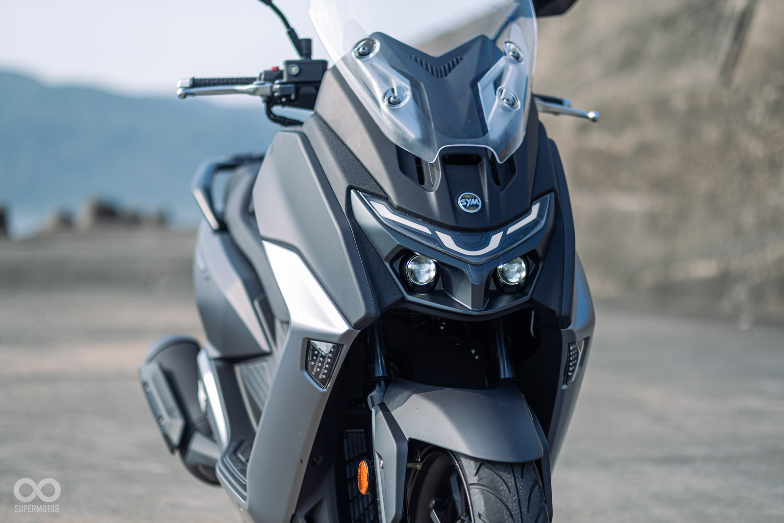 不得不說,當天一拿到MAXSYM GT試乘車,立刻就注意到全新的頭燈外觀讓我立刻想到近幾年在市場上交出漂亮成績單的JET車系,雙魚眼設計看起來侵略感更為強烈。