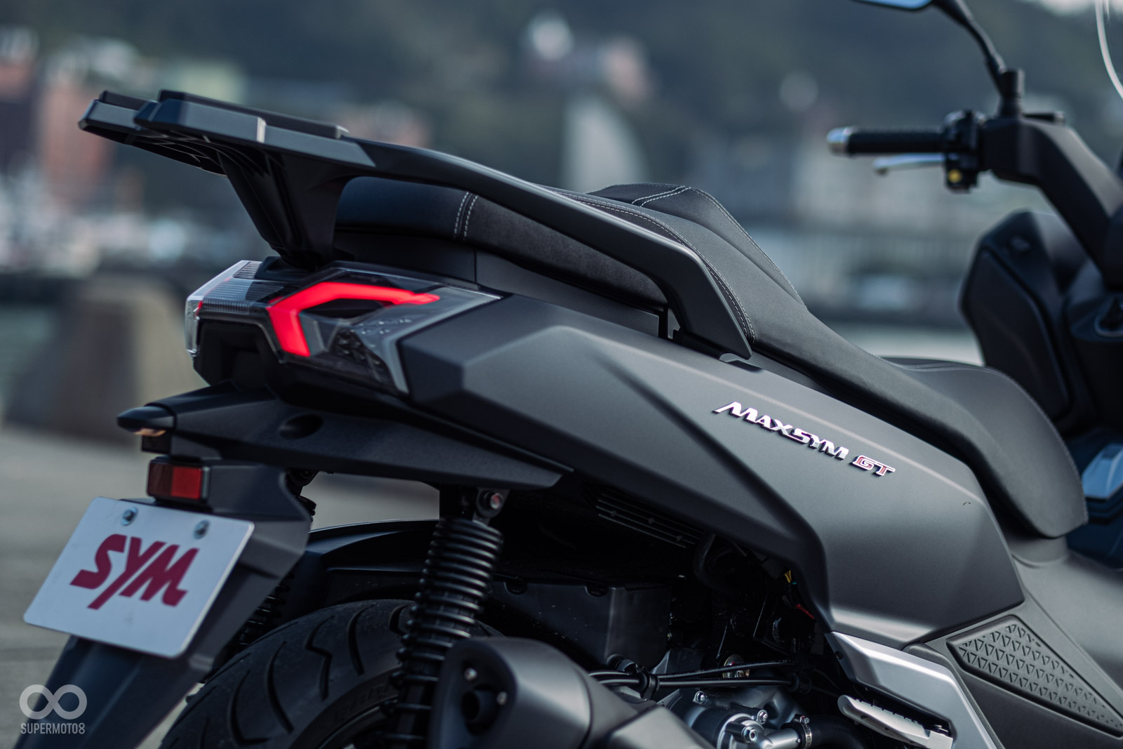 同時為了讓消費者不用為了犧牲的車廂空間猶豫不決,SYM現在也替MAXSYM GT標配後貨架,不論你要直接綁上行李,或者安裝後漢堡箱都更為便利。
