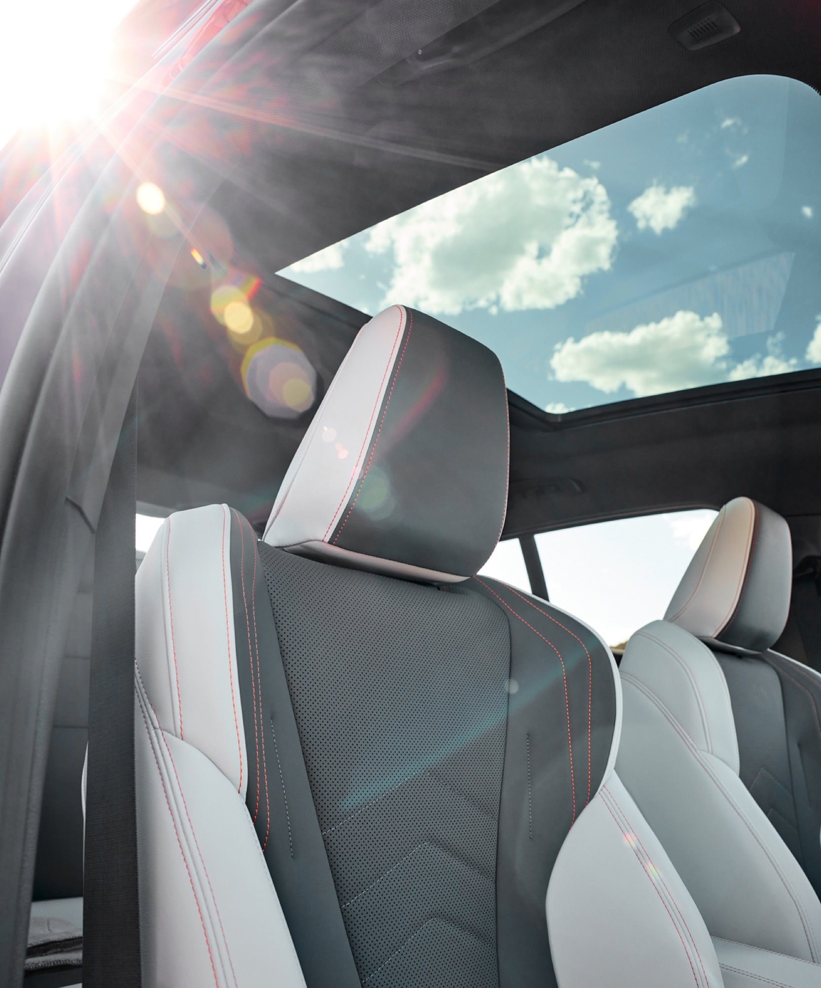 超越當代的頂尖科技,需由精緻細膩座艙烘托,全新世代BMW X2刻劃出高質感且舒適的座艙空間,透過精練的手法鋪陳懸浮式中央鞍座,搭配全新的懸浮式排檔座以及撥桿式排檔設計,讓車室空間布局簡約俐落,充滿前衛氛圍。全新世代BMW X2環艙採用大量豪華皮質、搭配複合材質拼接出級距之最的運動跑旅氛圍,而全新專屬雙色 Veganza 透氣皮質內裝以及專屬鋁質織紋飾板也為車室空間堆砌出更具層次的豪華感受,從進入車室便能觸及的M多功能真皮方向盤、雙前跑車座椅與豪華型雙區恆溫空調,為車主量身打造出在駕車同時也能享受的豪華舒適駕駛座艙。