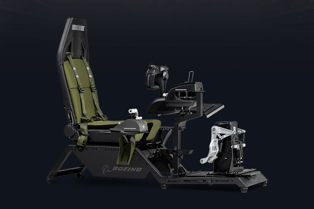 想體驗超擬真的飛行模擬器,熱愛模擬戰鬥機翱翔天際的玩家們,絕對不能錯過 NEXT LEVEL RACING 推出的 Flight Simulator Boeing Military Edition 飛行模擬器座椅,它並不是真的由波音公司製造的! 雖然如此,Flight Simulator Boeing Military Edition 仍然致敬了經典的波音元素,座椅採用軍綠色帆布包覆,搭配軍事綠色飾件,讓你彷彿置身真正的戰鬥機駕駛艙之中,享受十足的沉浸感!
