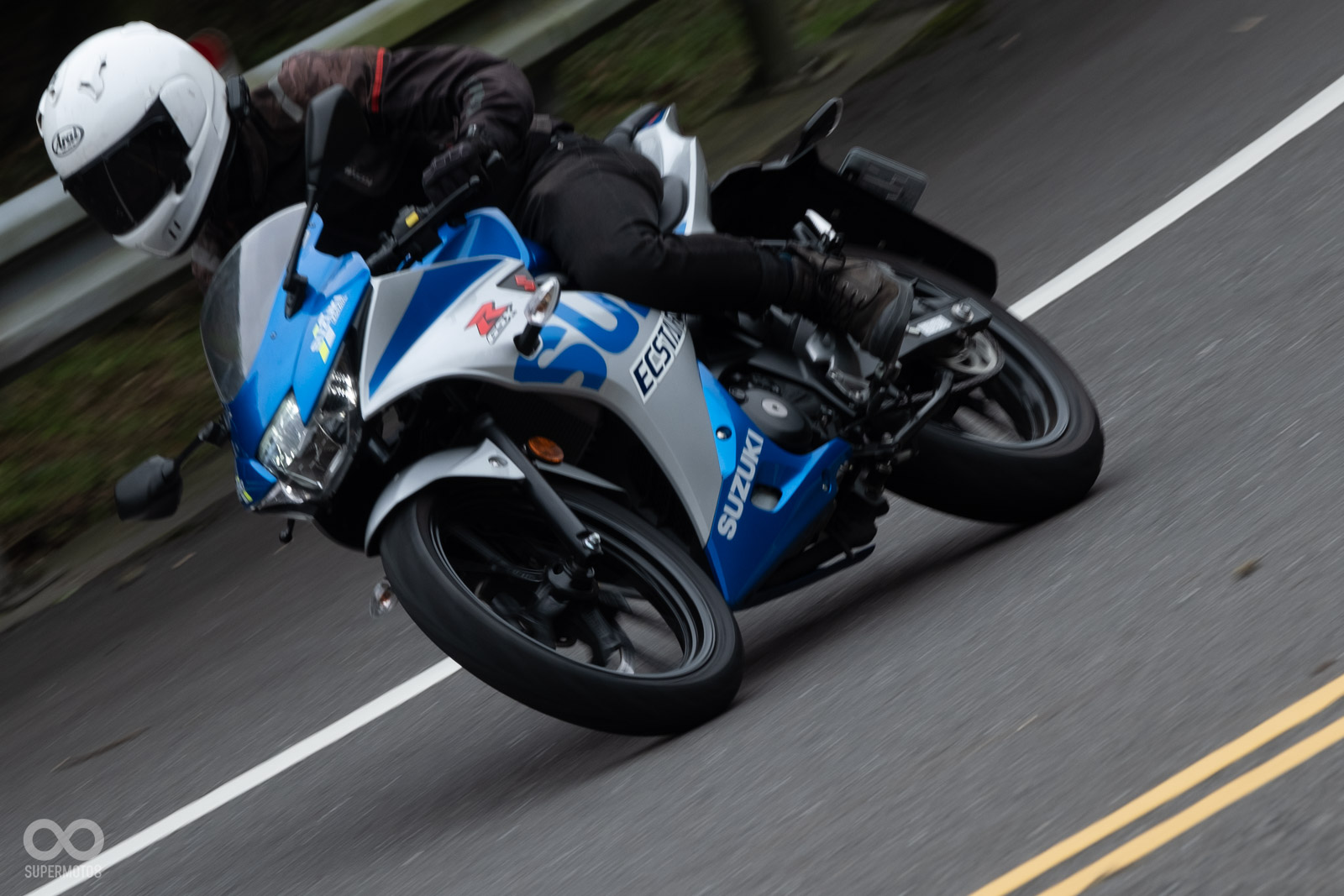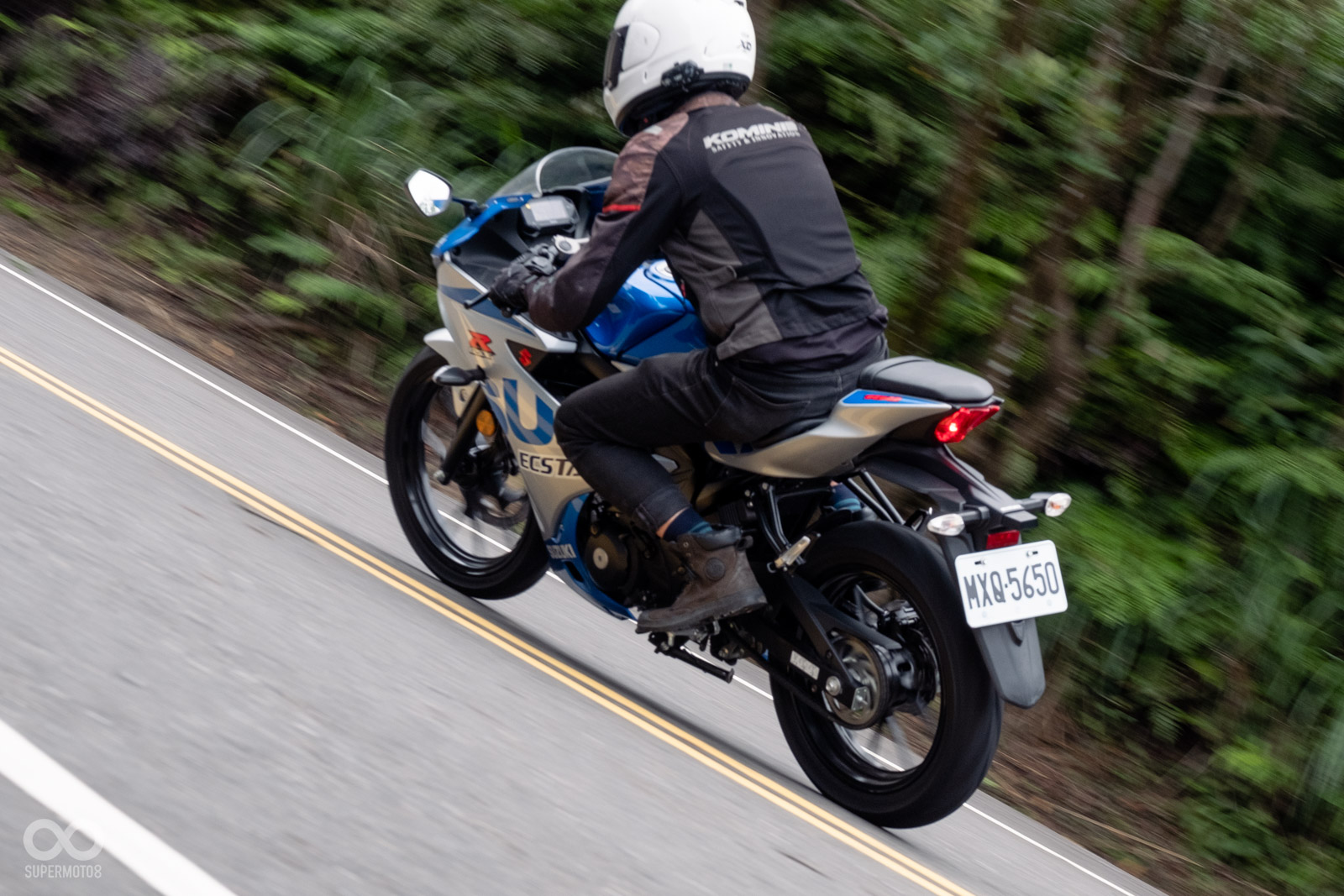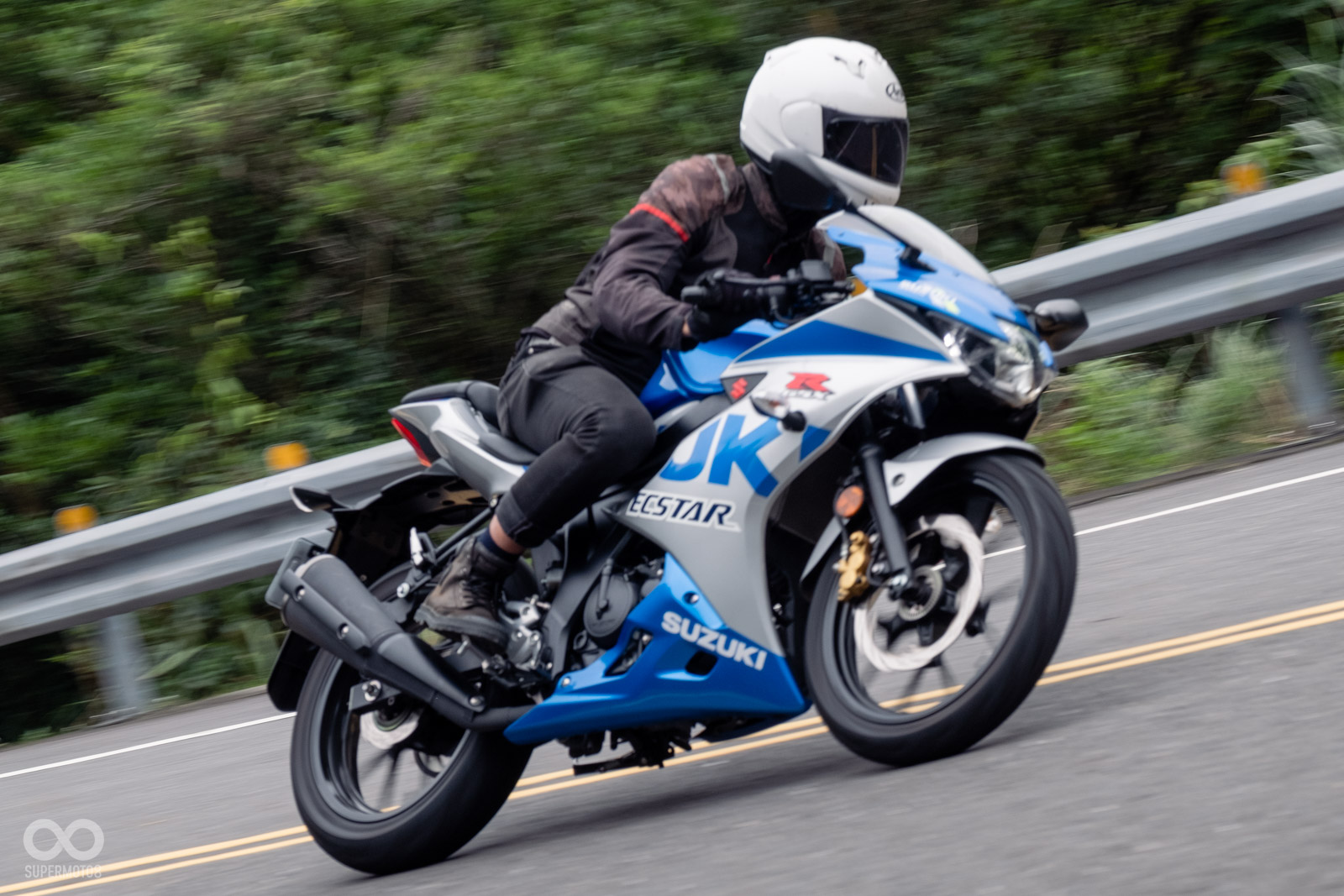 而再度跨上久違的SUZUKI GSX-R150,第一印象依舊沒有改變,一握上那超低的分離把手瞬間會感受到強烈的戰鬥感受,甚至對於新手需要習慣一下這有如核心訓練機的熱血坐姿,不過一騎上路後伴隨轉速攀升,這顆DOHC引擎高轉取向的設定依舊讓人愛不釋手,在高轉速下敏感的動力輸出與不斷上升的動力直到超轉燈亮起換檔。你會不由自主將轉速努力維持在高轉速域,享受那拉轉加速的暢快感。