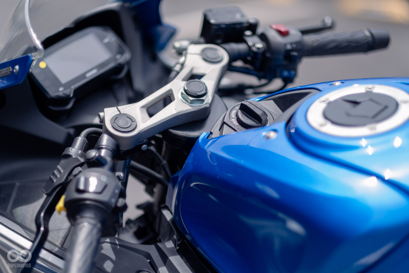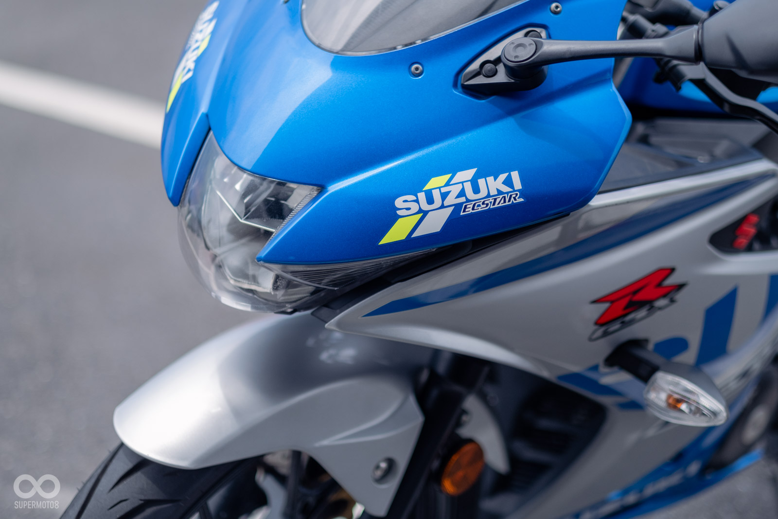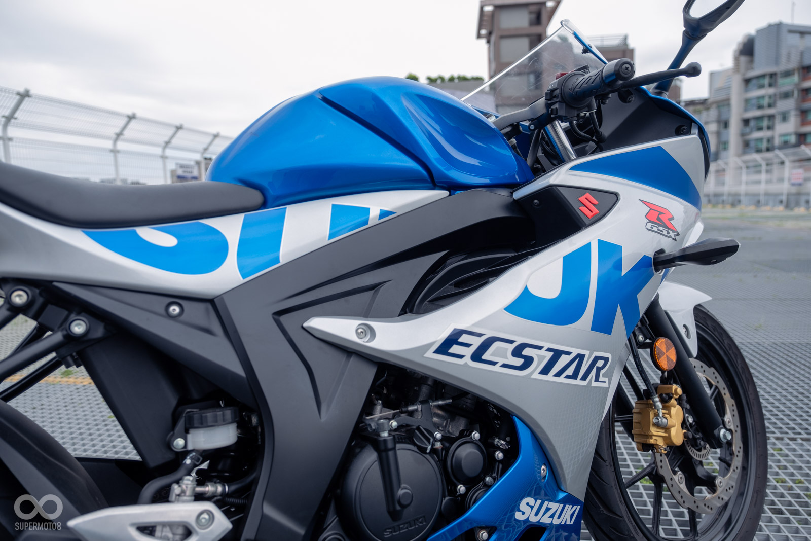 即便距離SUZUKI GSX-R150首次在台灣登場已經過了8年時間,甚至正在看文章的你或許就是車主,但就算過了好幾年再次看GSX-R150的外觀設計依舊表現格外亮眼,甚至本次拍攝的銀藍車色更是與SUZUKI末代MotoGP廠隊的GSX-RR採用類似的風格配色。