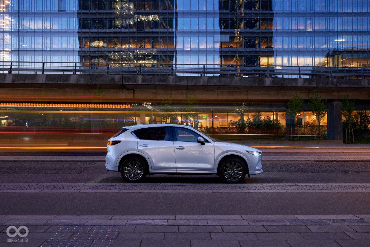 作為台灣市場進口中型休旅車指標車款,MAZDA CX-5 內外觀承襲臻至完美的魂動美學設計,以「Less is more」日式哲學為 MAZDA CX-5 勾勒優雅俐落車身線條,彰顯獨特出眾品味。車艙由日式職人工藝展現獨特細膩質感,搭載的嶄新車載科技更是領先同級,自入門車款 20S SELECT 即標配畫質細膩的 10.25 吋中央資訊顯示幕、360o 環景輔助系統、BOSE® 環繞音響附 10 支揚聲器、無線充電裝置、無線 Apple CarPlayTM、USB Type-C 高功率充電裝置、以及級距內唯一配置前擋投影式全彩 HUD 結合智慧型手機導航投影,享受駕馭樂趣之餘,也能輕鬆掌握重要行車資訊。除了配備完善的 i-ACTIVSENSE 主動安全科技,20S SELECT PLUS 以上車型更標配 ALH 智慧型頭燈與實用的雙前座導流式通風座椅。旗艦車型 25T AWD GT PREMIUM 更搭載深受車主推崇的溫潤細膩 Nappa 真皮座椅與雙開啟模式電動天窗,以豪華質感細膩內裝襯托其不凡氣勢。動力方面搭載SKYACTIV-G 渦輪增壓引擎,提供 230ps/ 42.8kg-m 最大動力輸出,輔以 i-ACTIV AWD 智慧型四輪驅動與 Off-Road 循跡輔助,成就恣意馳騁的非凡駕馭體驗。