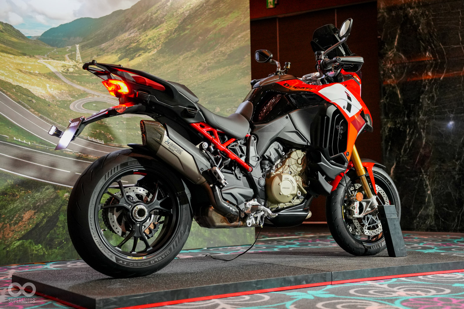 即便搭載了與V4 S相同的引擎,但由於車身方面的重新調整與前後17吋的車輪配置,使得Multistrada V4 Pikes Peak更敏捷、更適合彎道和賽道。Pikes Peak版本還採用Öhlins Smart EC 2.0電子避震系統、Marchesini鍛造輪框、碳纖維部件,以及型式認證Akrapovič鈦合金消音器,為騎士提供極致的駕駛體驗。