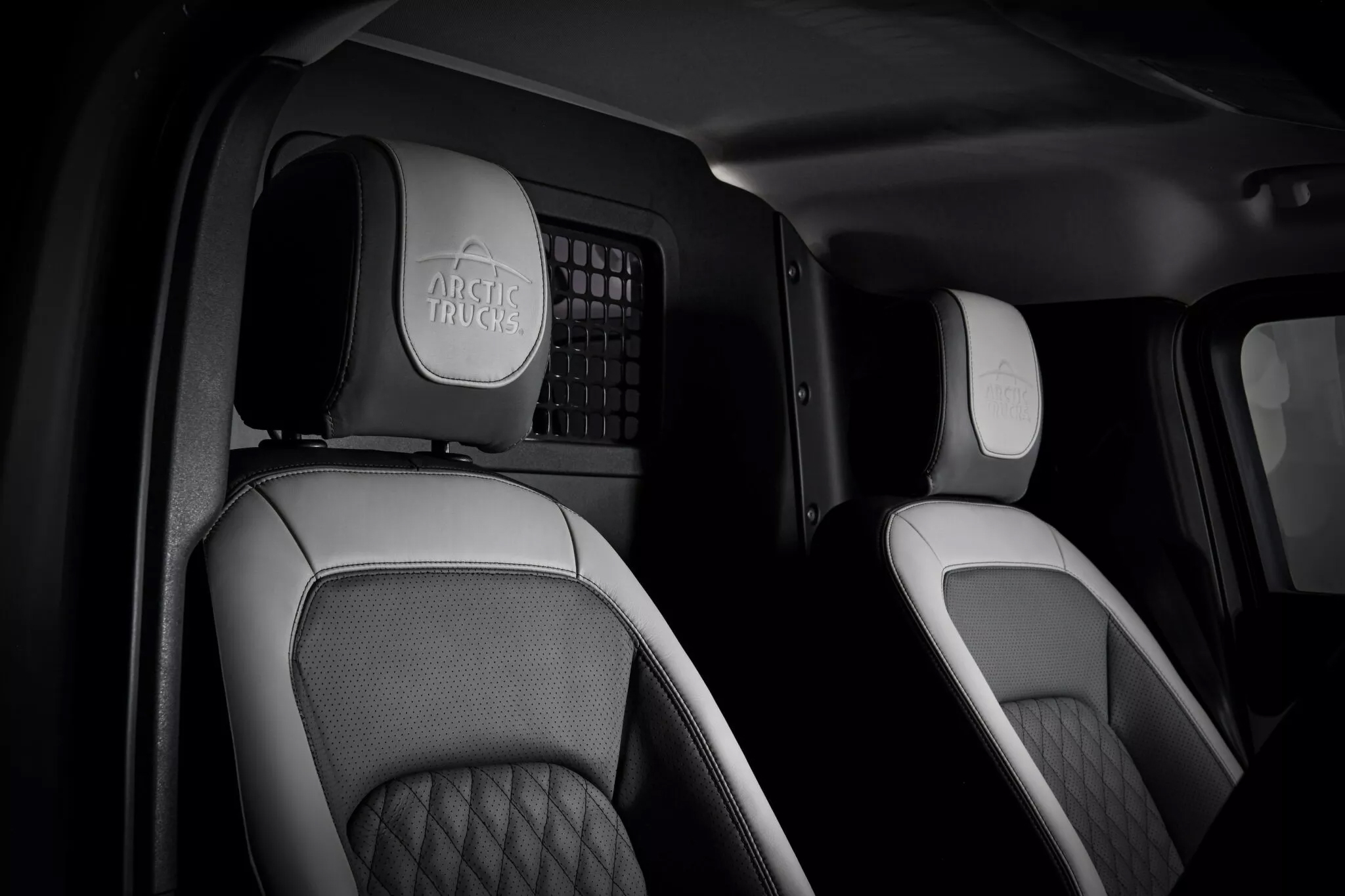 外觀方面,可以看到在車身多處有Arctic Trucks 標誌,車側有專屬鋁製踏板,前後配備搶眼紅色拖車鉤,加大的擋泥板避免泥巴噴濺。外觀有多樣可選配,像是車尾門上的全尺寸備胎,車頂外加LED探照燈。此外,車主也可選擇升級內裝,用上更高檔的皮革和高級腳踏墊。