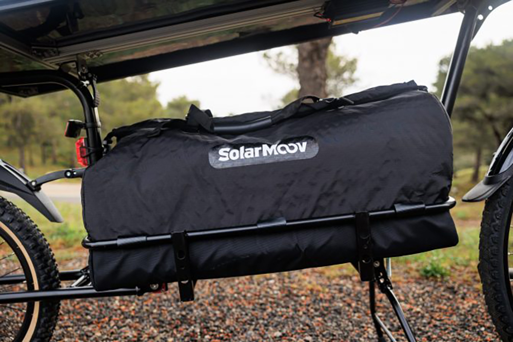 SolarMoov Explorer 提供多種載貨選項,包括可選的 100 公升防水 X-PAC 背包、鋁製車箱或載貨平板,可輕鬆固定在車架上。拖車本身也可拆卸收納,方便攜帶和存放。