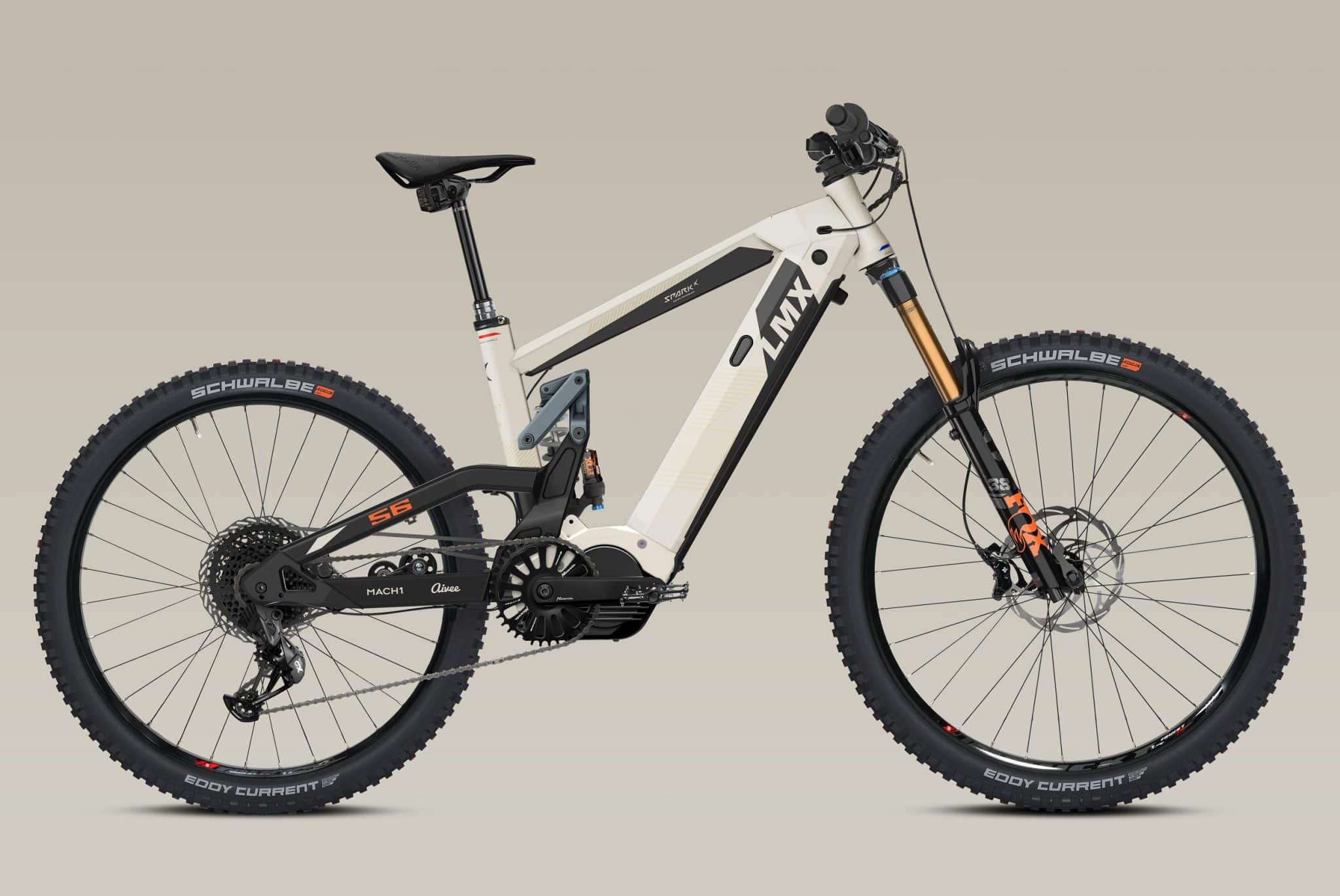 為了應對強大的動力,LMX 採用了專利的雙重變速系統,一側使用鏈條傳動,另一側使用皮帶傳動。前輪和後輪均配備 160 mm 行程的懸吊,突顯了這款 S-Pedelec 的越野性能。