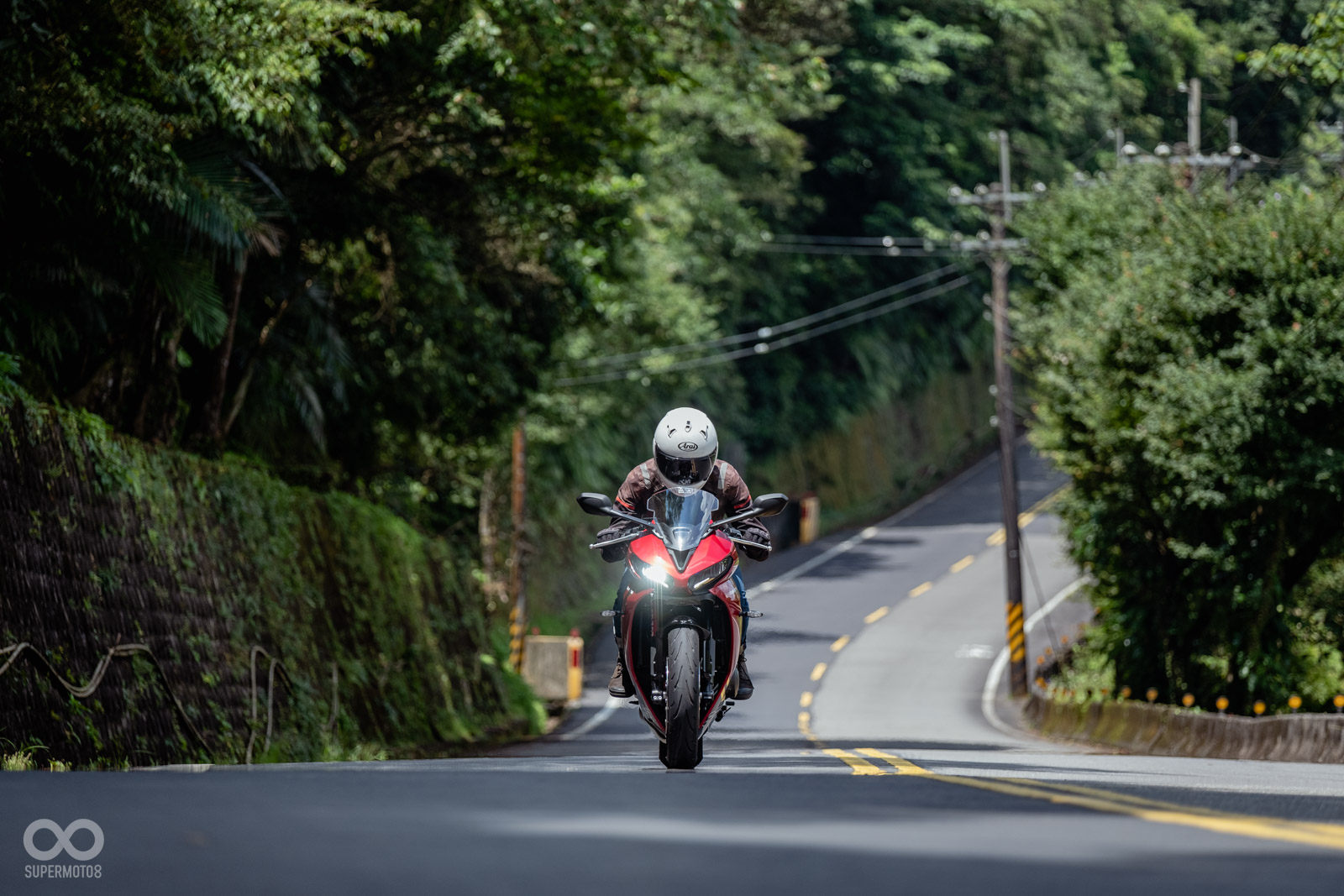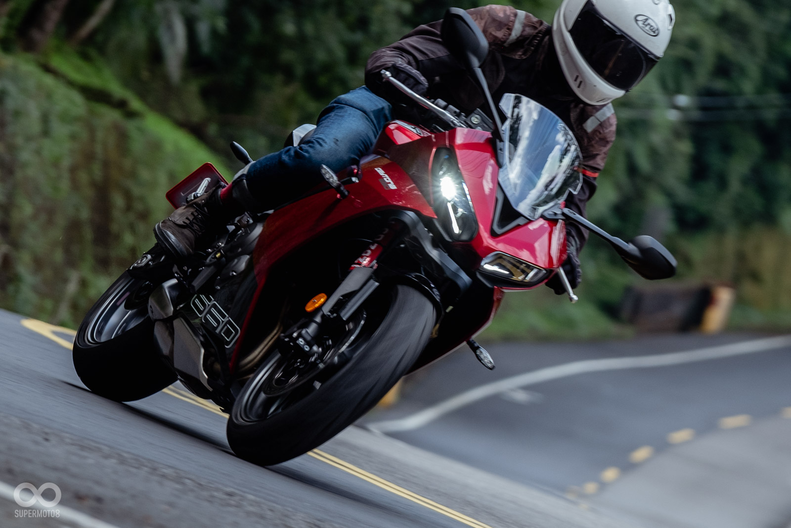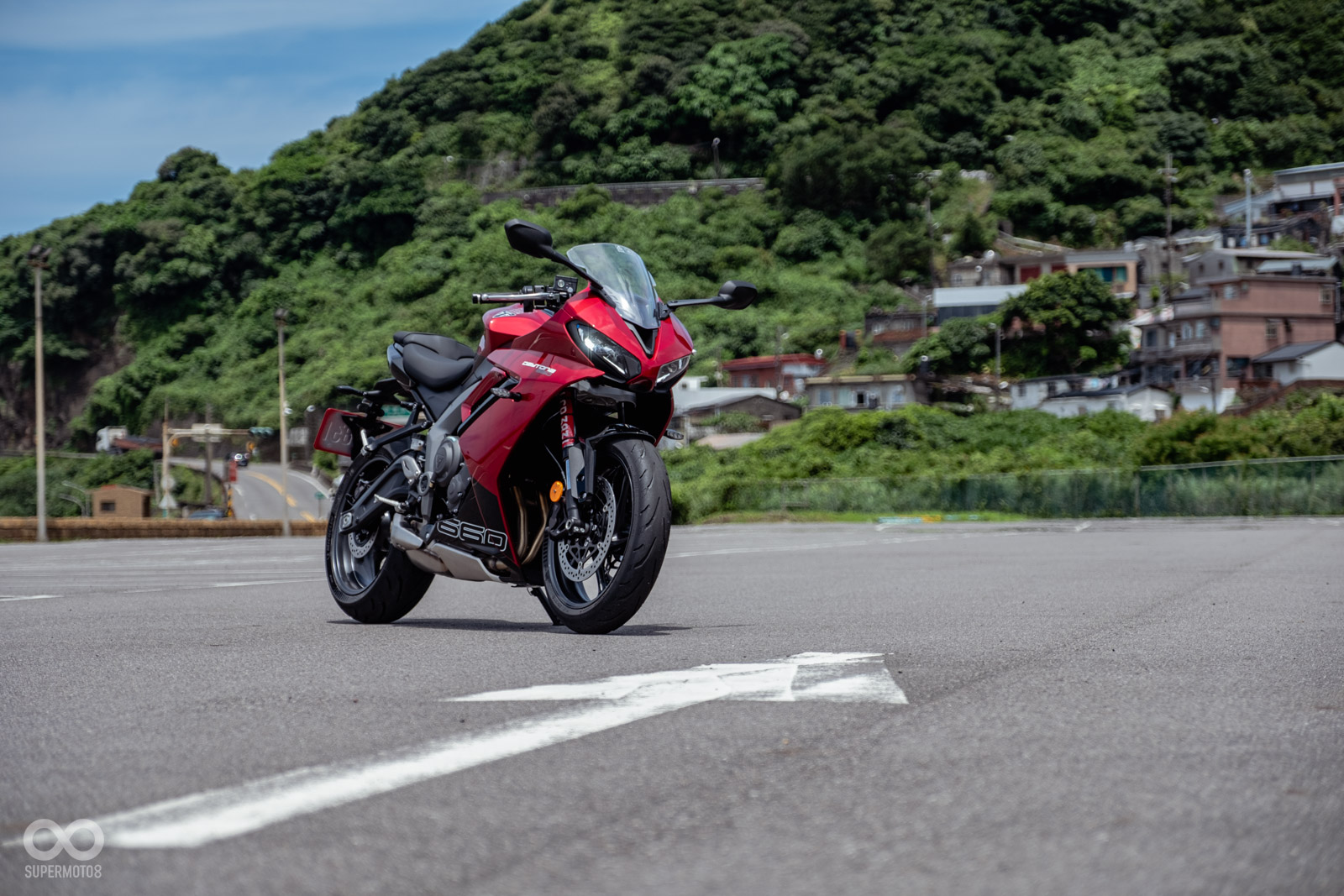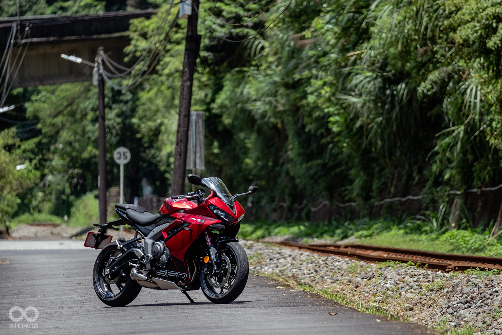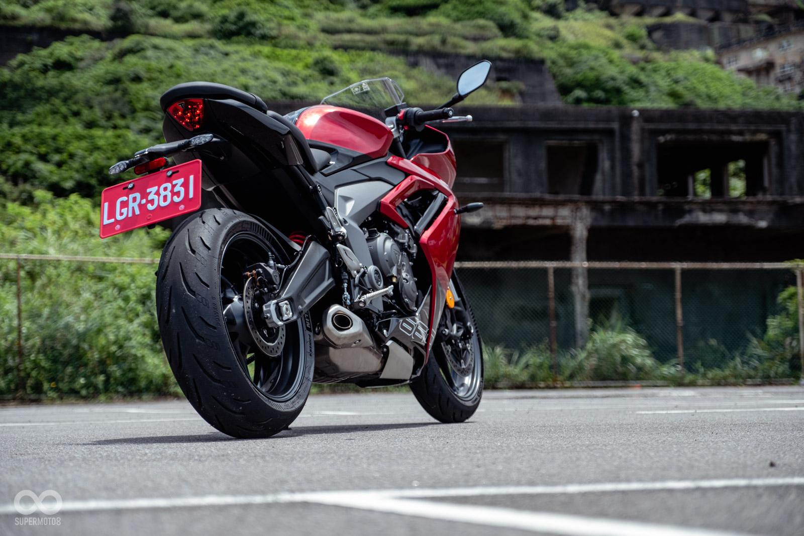這樣的設定有點類似SUZUKI GSX-8R,但或許是重心與前叉設定的差異,在進入傾角的速度表現上,TRIUMPH DAYTONA 660是顯得更為俐落與快速,GSX-8R則更為沈穩,或許更適合更高速的彎角、賽車場。