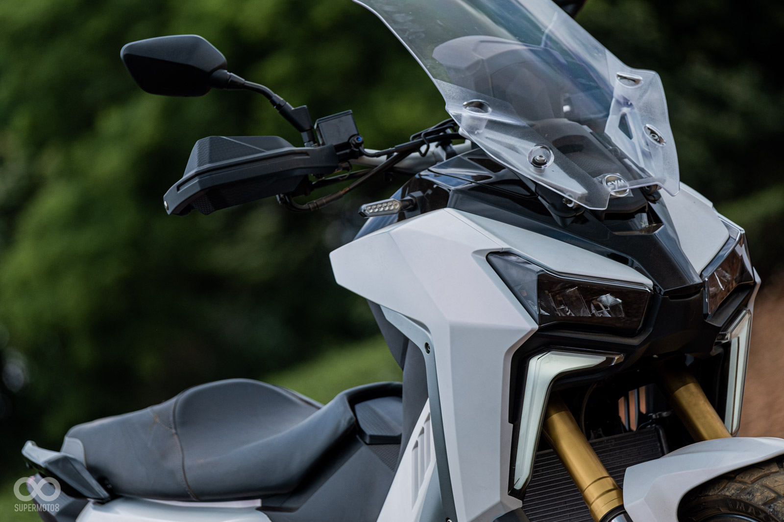 ADXTG最為亮眼的設計,莫過於車頭部分,除了有ADV車款微微外露出前叉、三角台,整個車頭拉抬向上的霸氣感之外,在車燈內部、定位燈部分,更融入劍齒虎的意象,創造出神似虎牙的視覺感受。
