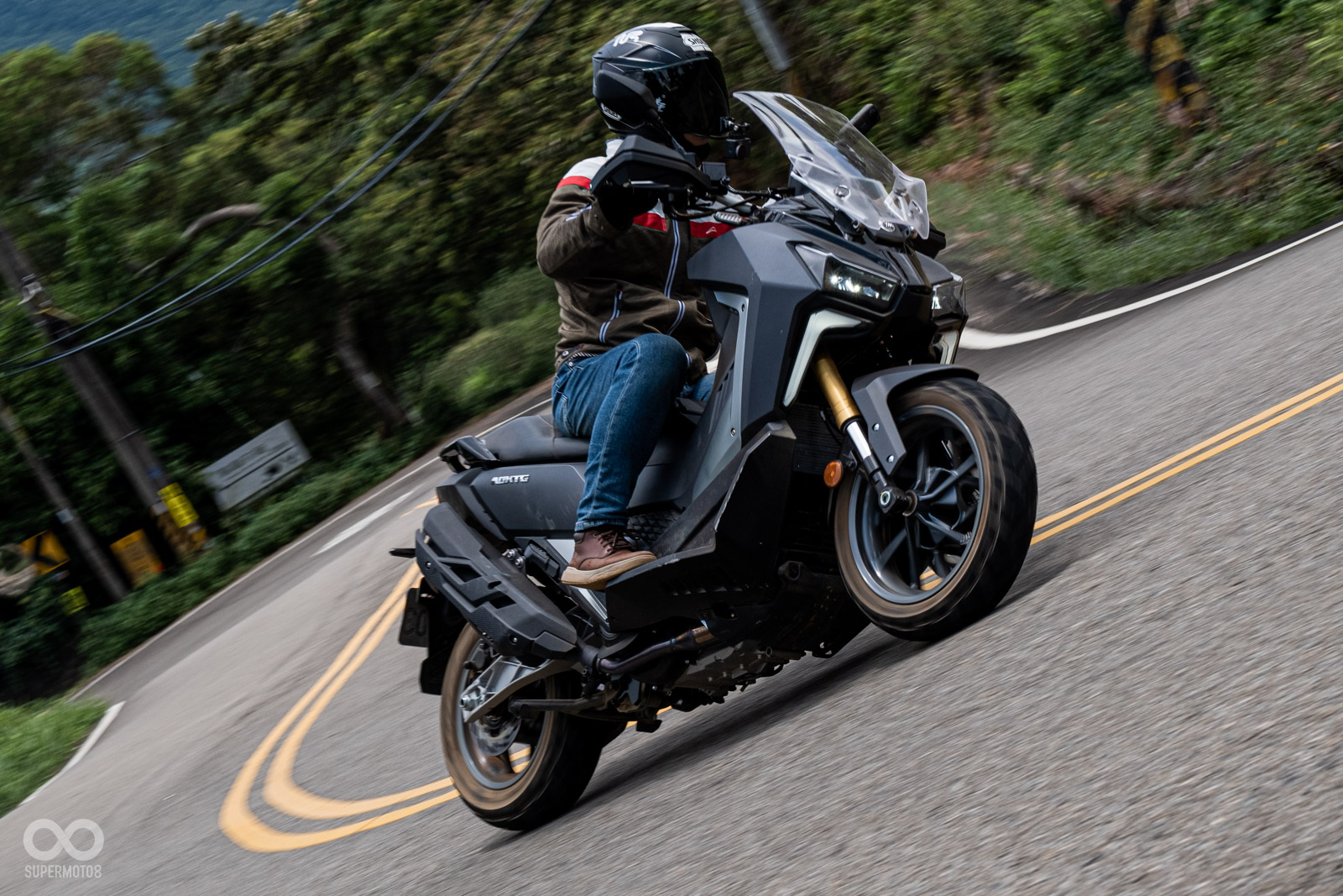 回到柏油鋪面的山道上,ADXTG整體的懸吊、車架設定,還是比較偏向硬朗,也造就整台車其實給人一種“很街車”的騎乘感受,跟過往我們體驗過的ADVENTURE、跨界速克達那種偏軟Q、前煞車一扣車頭會下沉的調性很不一樣,ADXTG反而是能以比較沈穩的節奏切入彎道,配合固鎖式架構帶來的後輪自由感,創造出有點類似運動街車的騎乘節奏。