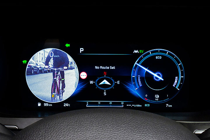 整合傳統後照鏡和後視攝影鏡頭的輔助系統其實相當實用,汽車領域也早已有類似的應用,例如部分 Kia 車型在打方向燈時,儀表板上就會自動顯示盲區影像,方便駕駛確認安全。