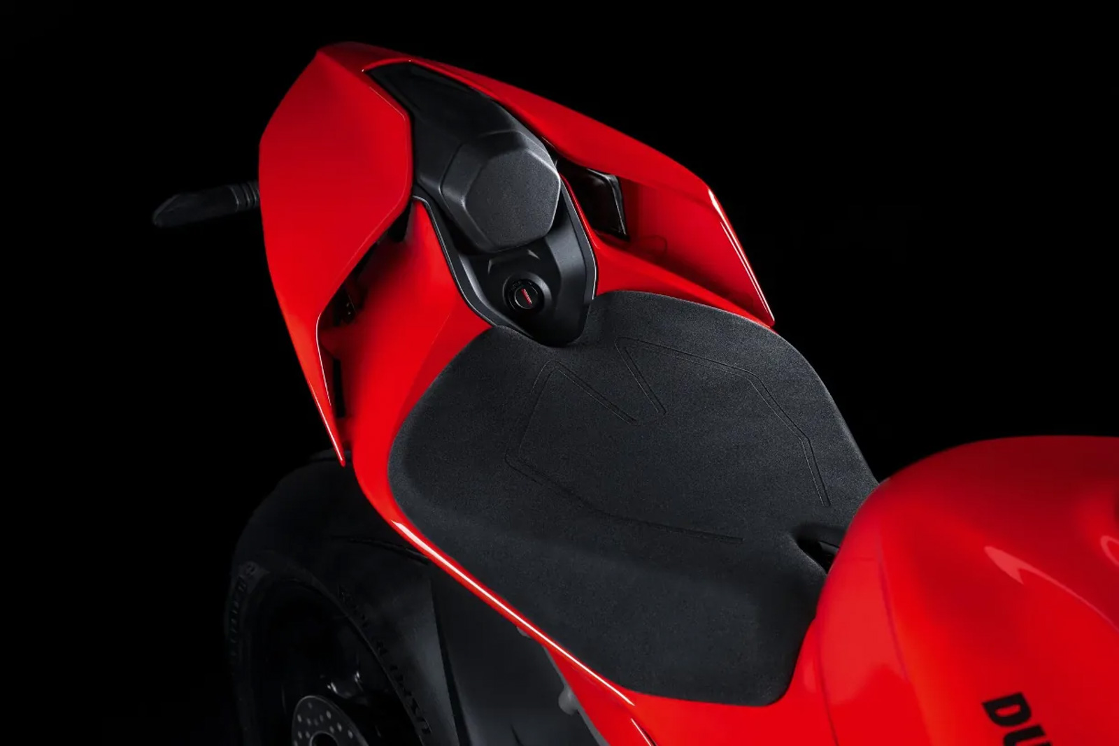 另外,整流罩部分也重新調整,在前輪附近增添更寬闊的空間,讓整個車頭看起來更為緊湊,DUCATI表示這樣的設計是源自於Desmosedici GP廠車,以利於高速騎乘時擁有更好的轉向效率;坐墊部分也獲得更新,變得更長更寬,提供騎士更自由的重心移動,此外,腳踏和油箱也重新碩型,提供更高的離地間隙,並且在過彎時騎士也能更好靠在油箱上;車輛座高為850MM,裝備重量則為190公斤。