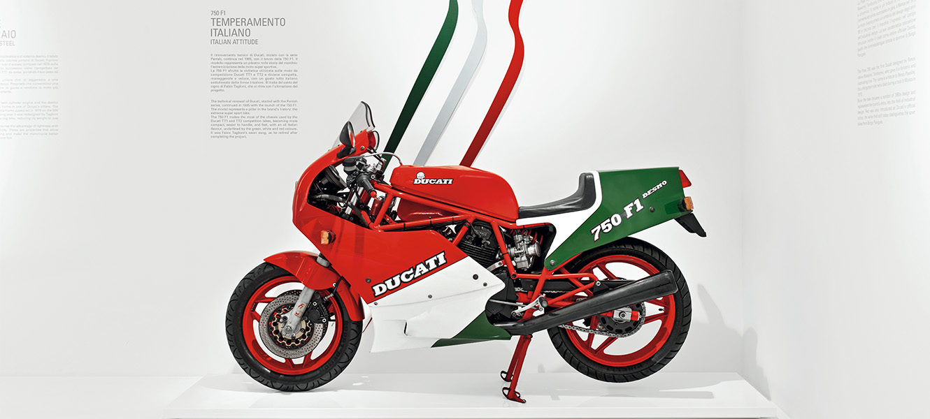 DUCATI當年被Cagiva收購之後,由Taglioni設計的最後一款DUCATI ,DUCATI 750 F1採用了來自Pantah的車架,擁有極為輕巧、靈活的操駕特性,儘管750 F1並非傳統意義上的SUPERBIKE運動車款,但卻是當年DUCATI車款陣容當中,最具運動氣息的車款。