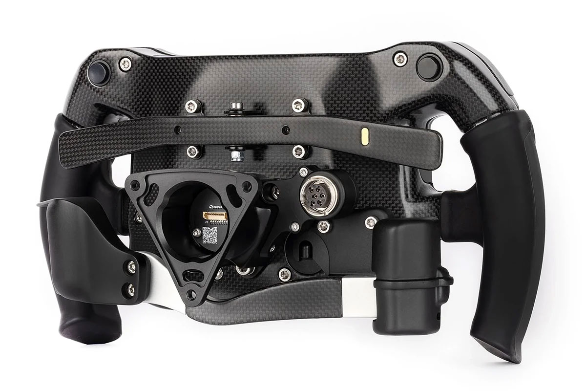 方向盤的碳纖維外殼不僅輕巧堅固,還散發出高級質感。握把採用防靜電矽膠材質,舒適且防滑。 4.3吋高解析度螢幕,搭配可自訂的LED燈效,讓重要資訊一目瞭然。從碳纖維單體式換擋撥片到多功能按鍵,每個細節都經過精心設計。連換擋撥片的阻力都仿照真實賽車,需要900公克的力道才能撥動。