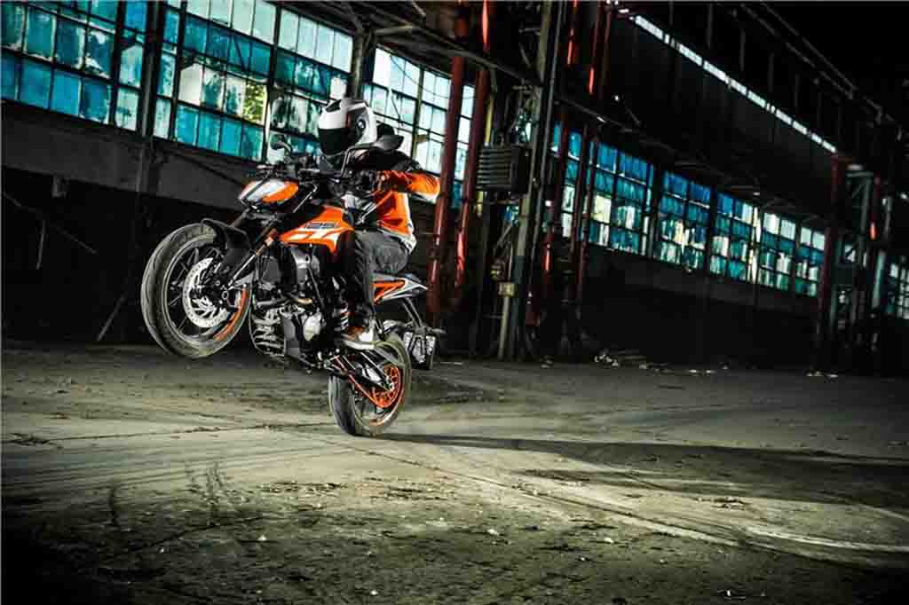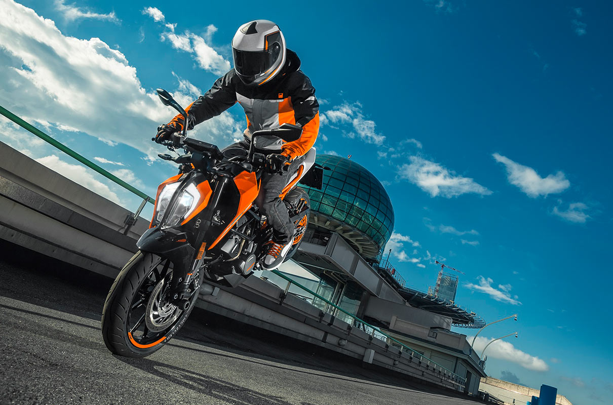 別以為單汽缸引擎加上嬌小車體就小看它,單汽缸引擎靈敏且直接的動力表現一向是多缸引擎無法比擬的優勢。2017年新款的DUKE 125使用水冷單缸DOHC引擎,這具小引擎能夠發揮15hp最大馬力,這樣數據已經超越許多150c.c對手。另一方面僅137kg的重量是另一大優勢,如果將行駛環境由公路變為山道,這樣的重量與馬力表現,在多彎道的環境中有著令人畏懼的優勢,還有單缸引擎快速的動力反應,顯示小排氣量車款依舊具有大排量無法抗衡的優點。