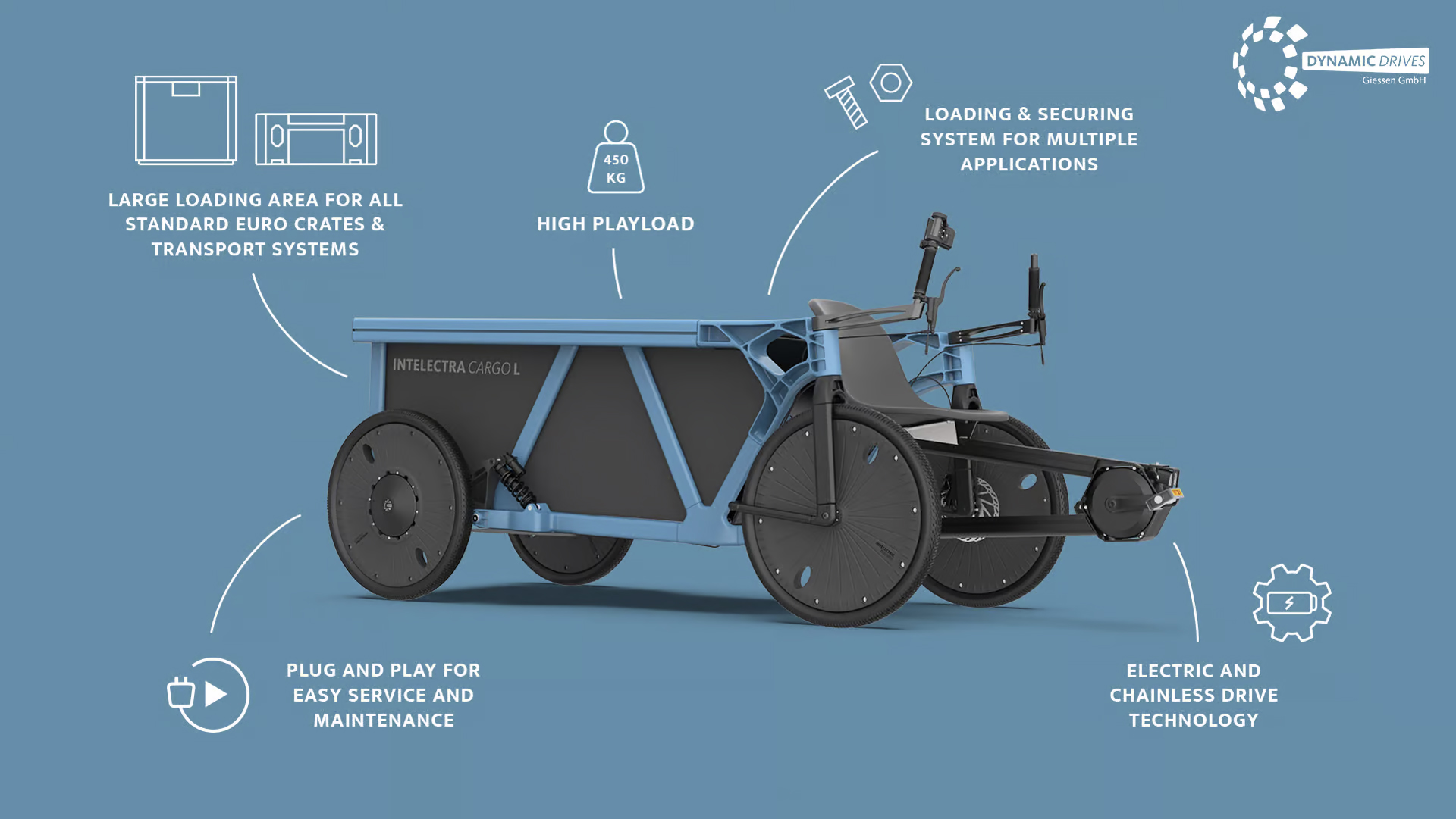 Intelectra 單次充電可行駛約 93 公里,充電時間僅需約 90 分鐘,有效減少停擺時間。此外,再生製動系統還能增加續航里程。Dynamic Drives 不僅提供完整的 Intelectra 四輪車,還推出了可彈性搭配的「Intelectric 串聯混合動力系統」(SHS)。車廠可自由選擇馬達和電池組的配置,打造出獨特的電動自行車或三輪車。
