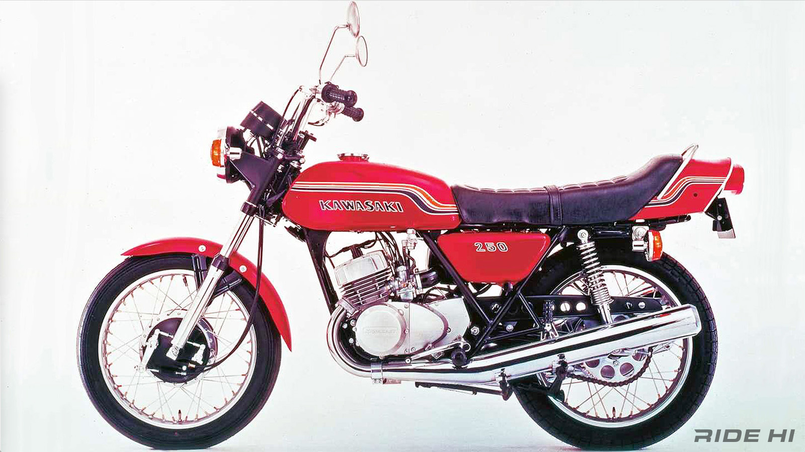 這其中,於1972年登場的 250SS(也被稱為 KH250 )成為了這個家族的最年輕成員。250SS 採用了 249cc 的三缸引擎,具有 32PS @ 8,000rpm 的最大馬力和 3kg-m @ 7,000rpm 的最大扭力,並安裝在與Mach II 350 相同的車架中。