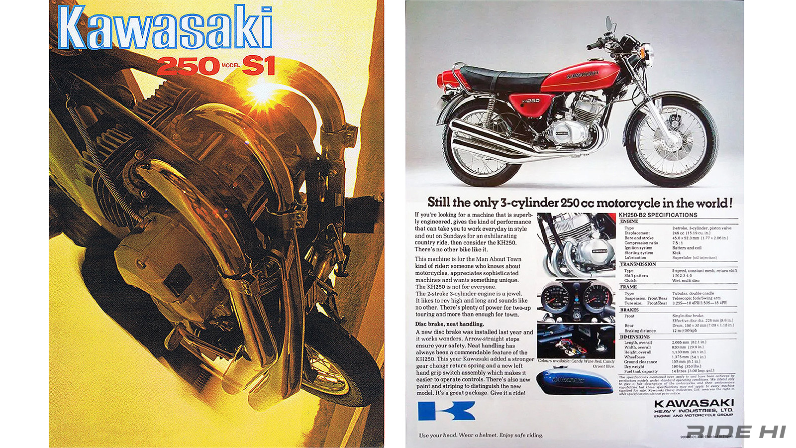 隨著時間推移,Kawasaki 二行程三缸家族也隨之變化,其中Mach II 的排氣量從 350 增加至400cc,前輪的鼓煞系統也升級為碟煞,並更名為 KH 系列;同時,隨著四行程引擎逐漸成為市場主流,KH 系列的地位開始變得邊緣化,不過 KH250 卻憑藉其獨特的 250cc 二行程三缸引擎的稀有設定,依然在車迷圈中保持著高人氣。