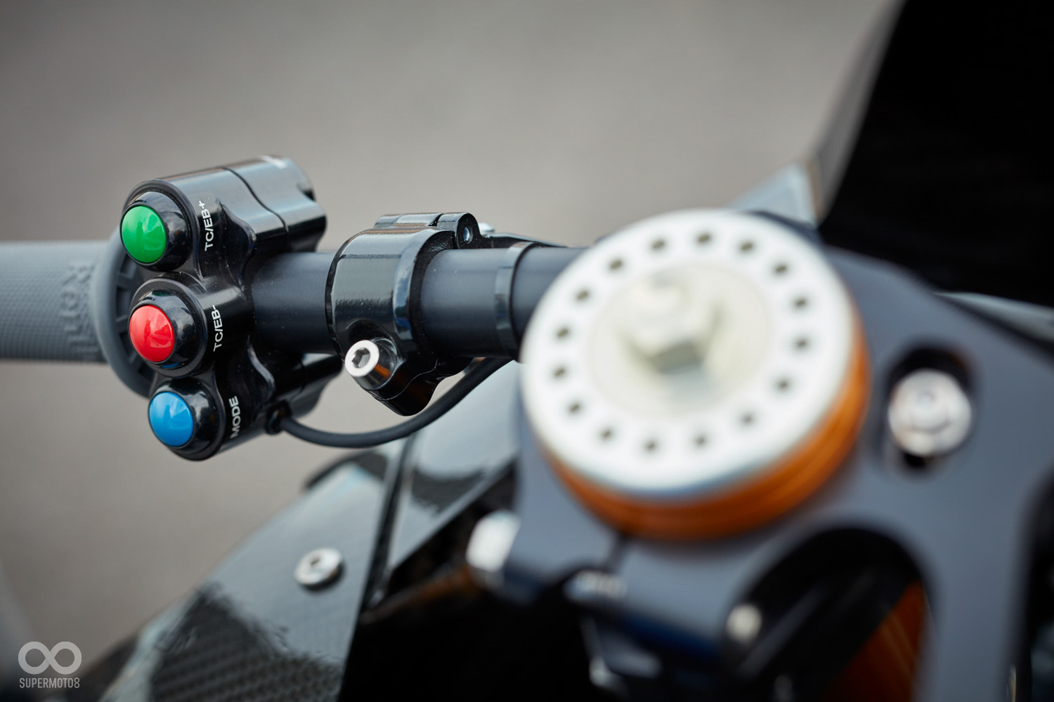 電控向來是BMW的強項,在HP4 RACE上自然不會少,彈射起步、循跡防滑(15段可調)、引擎煞車(15段可調)一應俱全,但與我們印象中的精緻不同,競賽取向的設計讓一切的資訊回歸到最簡單明瞭的方式呈現,所有的調整都採用獨立按鍵方便騎乘時快速調整,儀表板也只能顯示檔位、轉速、單圈時間、電控等級等基本資訊。