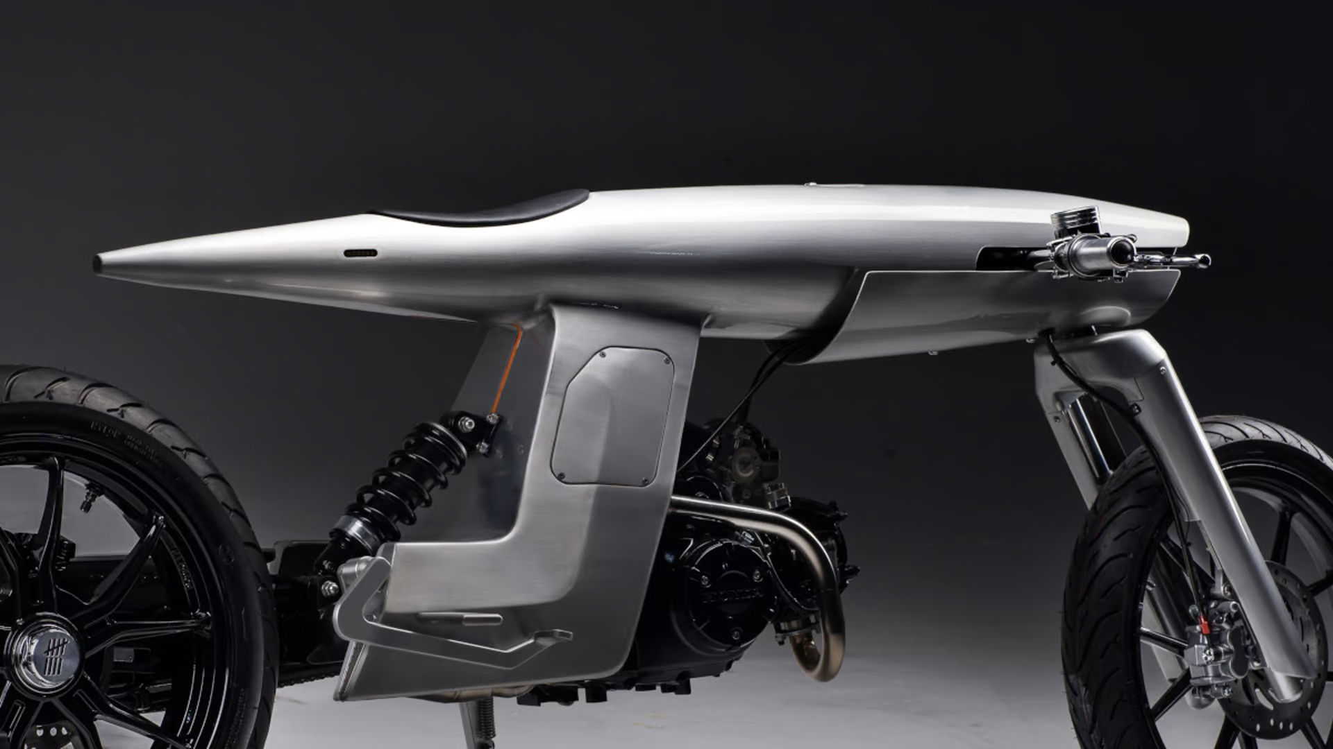這台摩托車看起來像子彈,但動力方面就沒有那麼狂暴了。它搭載的是一台來自 Honda 的 125cc 氣冷四衝程單缸引擎,配上四速變速箱和 Mikuni 化油器。雖然它的速度並不會讓你嚇得魂飛魄散,最高時速只有 109 公里,但它在燃油經濟性上絕對是王者,每100 公里只消耗1.88升汽油,環保又省錢。