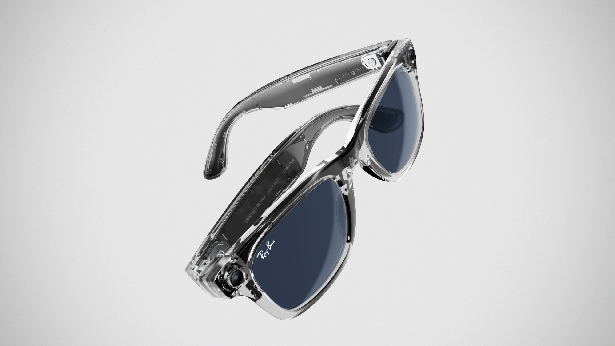 至於外觀,這次限定版的透明 Wayfarer 鏡框可以說是科技感滿滿。透亮的設計展現了眼鏡裡那些讓你成為「最依賴AI 的人」的神秘科技,再加上隨光變色的鏡片,活脫像是從科幻電影裡走出來的角色,僅差一個拙劣的演技就能成為低成本科幻片的主角。