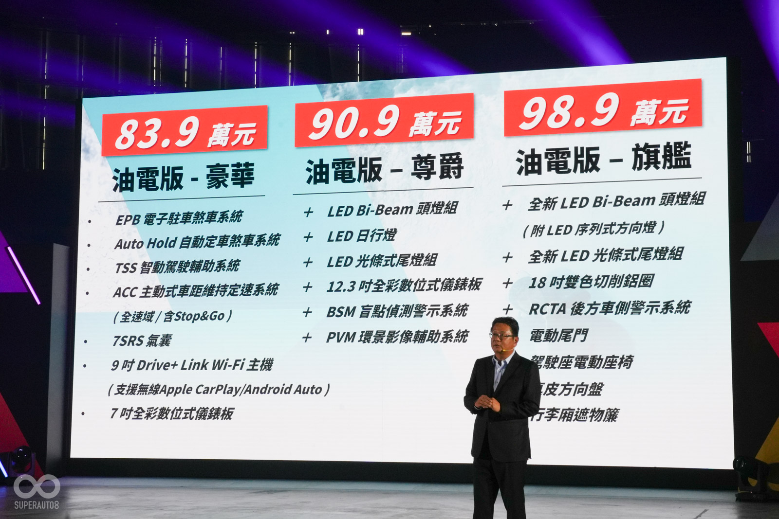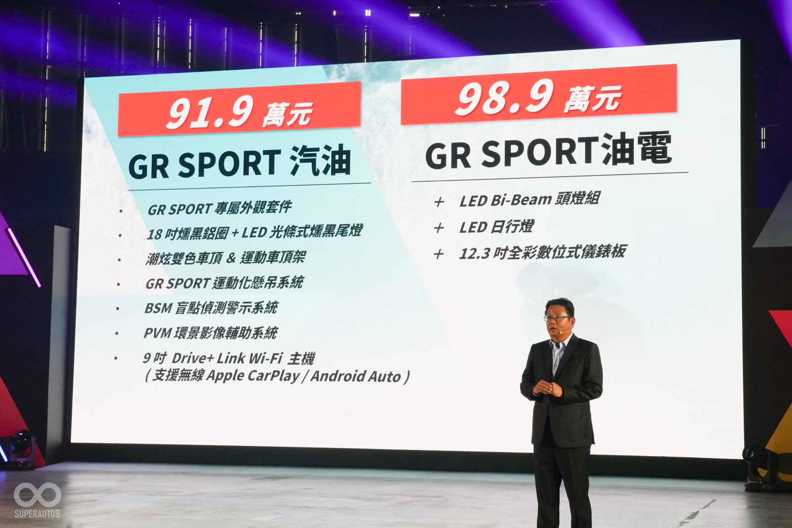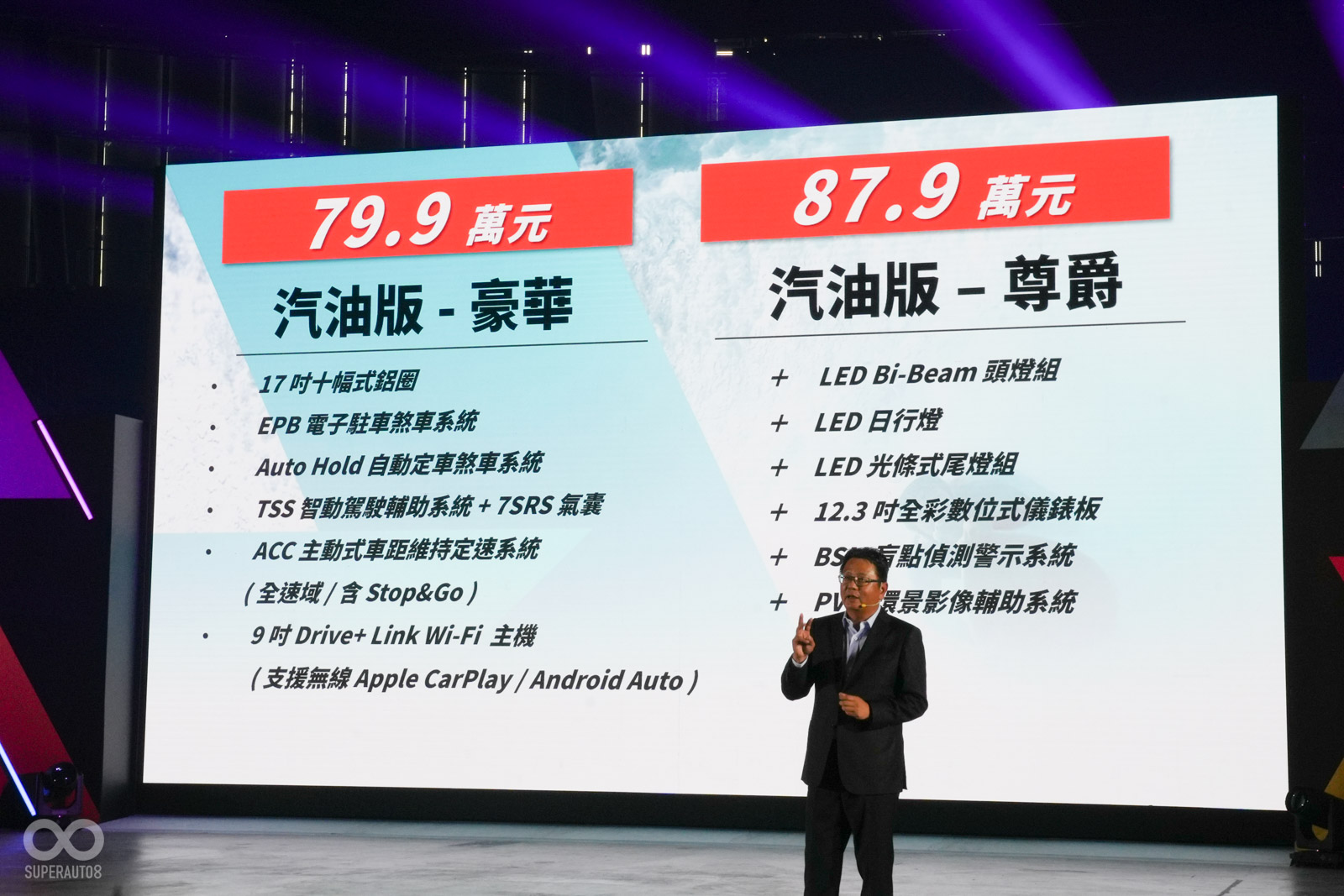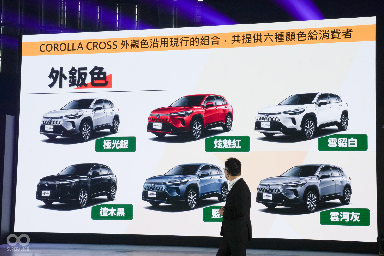 在等級編成上,COROLLA CROSS提供汽油豪華、汽油尊爵、汽油GR SPORT、油電豪華、油電尊爵、油電旗艦、油電GR SPORT,共七種等級以滿足不同消費者需求,汰舊換新價74.9.萬起。車色選擇上,一般版提供雪貂白、極光銀、雲河灰、檀木黑、炫魅紅、藍曜灰六種外觀車色,GR SPORT版則提供雪貂白、極光銀、雲河灰、炫魅紅及新色奔放藍供消費者選擇。