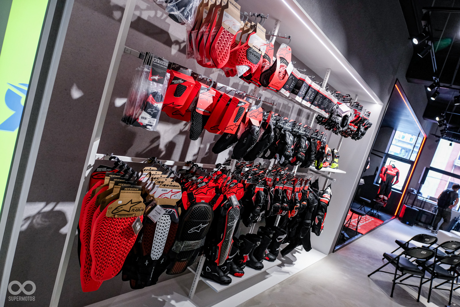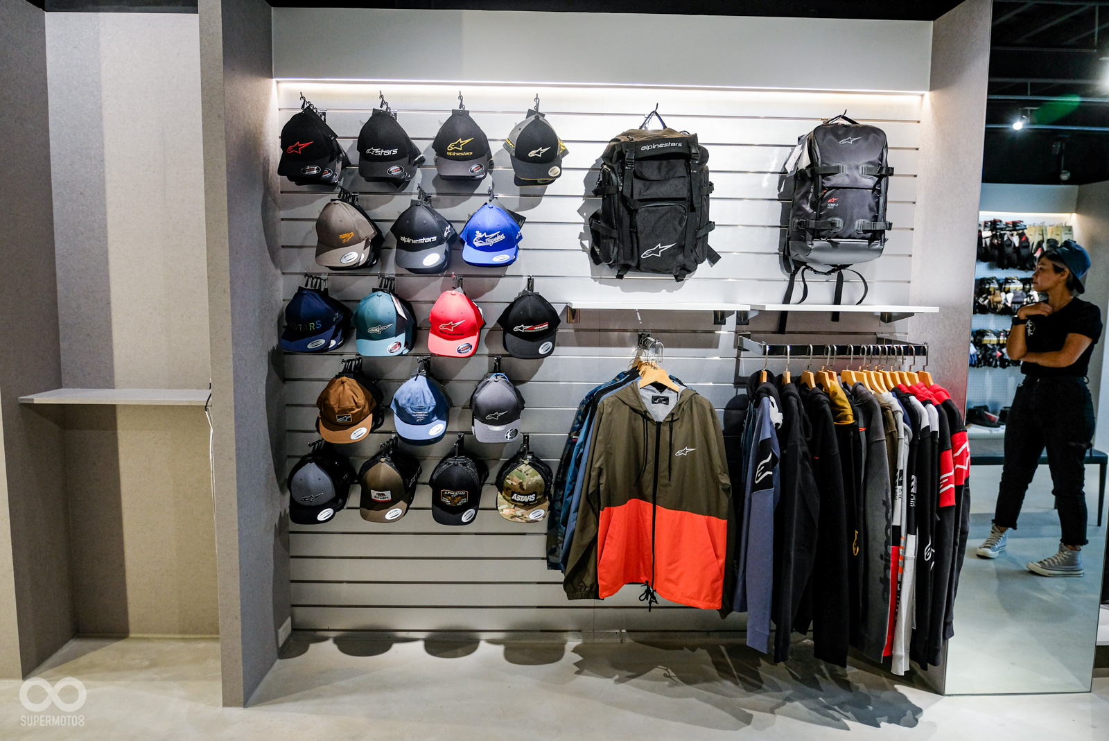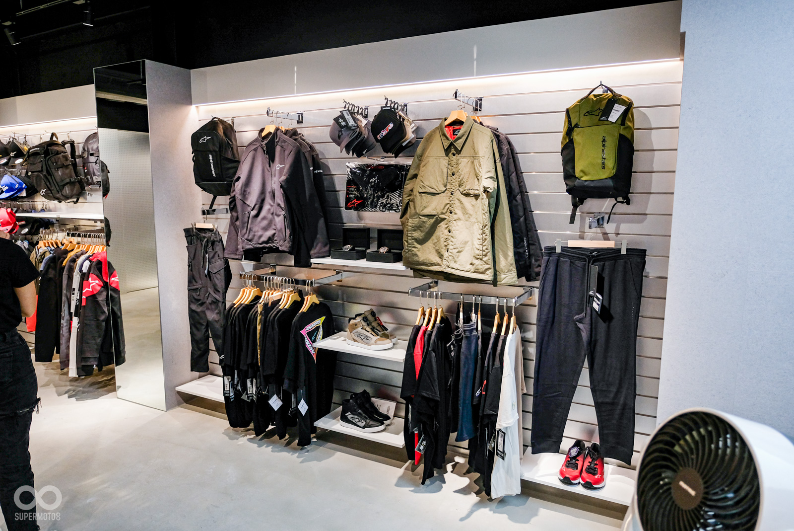 在一樓後方深處,則是展有ALPINESTARS的休閒款人身部品,以及ALPINESTARS的潮流服飾,讓人身部品不只可以在熱血騎乘時使用,也能變成每一位騎士日常穿搭的一部分,把騎士生活帶入生活之中;上到二樓則有熱血十足的皮衣、Tech-Air氣囊衣以及MotoGP車手系列的人身部品展示。