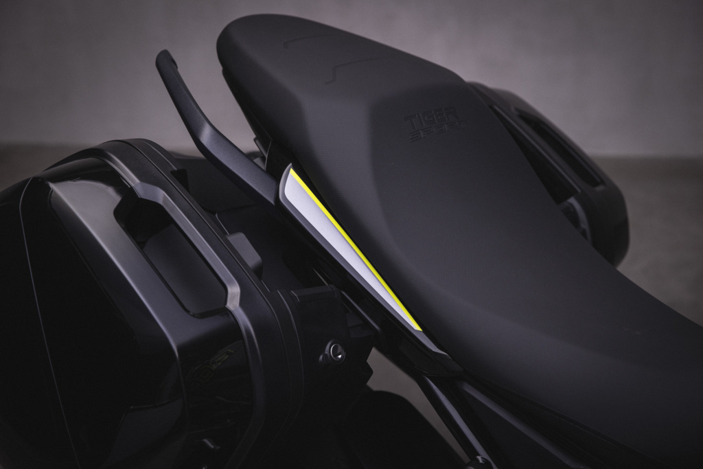車身中段有著寬大的油箱和線條硬朗的線條刻劃,坐墊到車尾則是巧妙融合了運動感以及舒適實用性,賦予 Tiger Sport 800 曼妙的車身曲線組合,就如同車名所展示的一般,像極了一隻隨時準備撕咬眼前所有路面的猛虎。