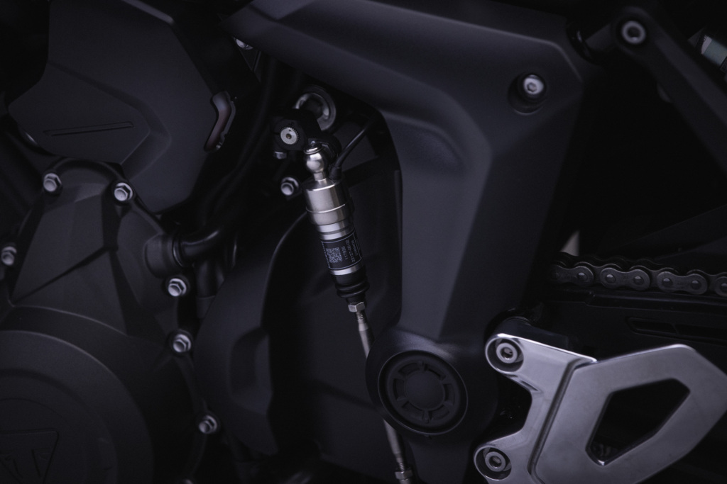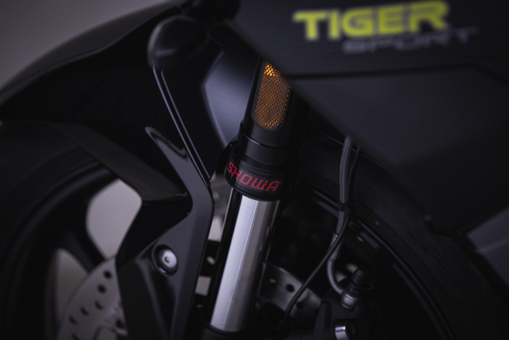 Tiger Sport 800 配備頂級規格的可調式懸吊組件,包括 Showa 41mm 倒立式前叉,可調整回彈和壓縮阻尼。這些前叉與Showa Monoshock 後避震器相輔相成,後避震器提供回彈阻尼調整和150 毫米的懸吊行程,以及液壓預載調整器,讓騎士可以在攜帶行李和後座乘客時輕鬆優化騎乘體驗。