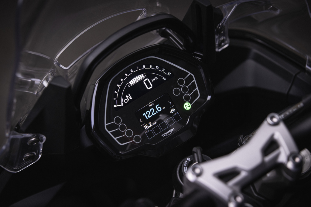 清晰且緊湊的多功能顯示器,配備 LCD 上半部和整合式彩色 TFT 儀表,易於閱讀,並配備方便的開關立方體。標配 My Triumph Connectivity System,可透過藍牙控制導航、手機和音樂資訊。