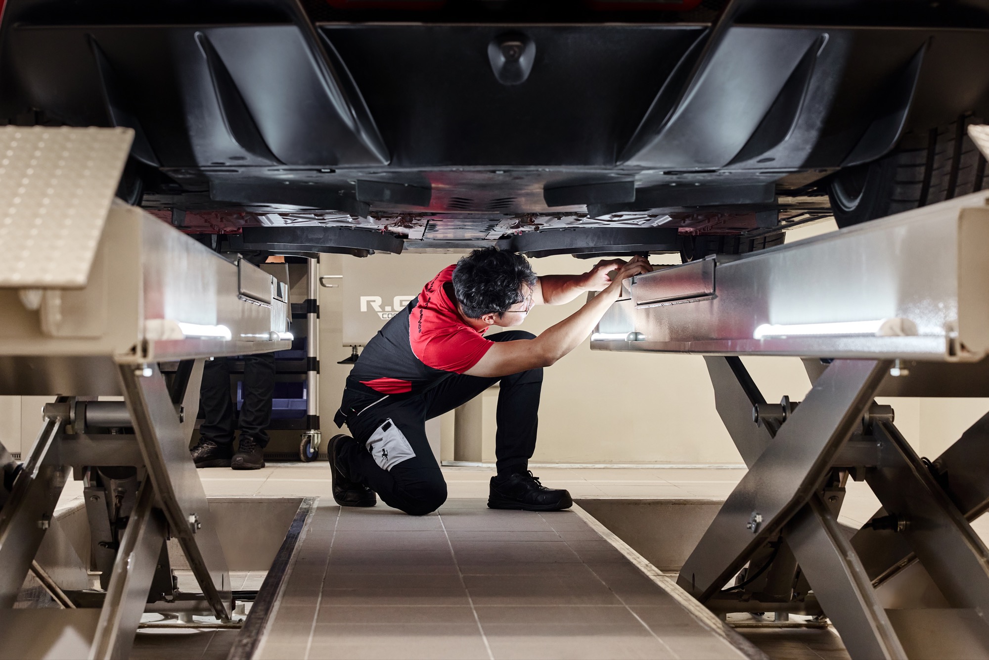全新售後服務中心,更以打造效率、安全且舒適的環境為宗旨,在專業的維修工作位上,帶來由義大利技師親臨打造的全功能工位,不僅因應現代化車輛更多電子設備檢修的工作需求,更讓符合原廠認證的專業工程師在進行車輛修復工作時,能夠在更寬敞且便利的環境展現最高的工位效能。不論是對客戶在維修、服務水準和品質上,亦或是對員工的工作環境條件,臺灣蒙地拿都以法拉利全球的服務標竿來創造極致的奢華客戶體驗。