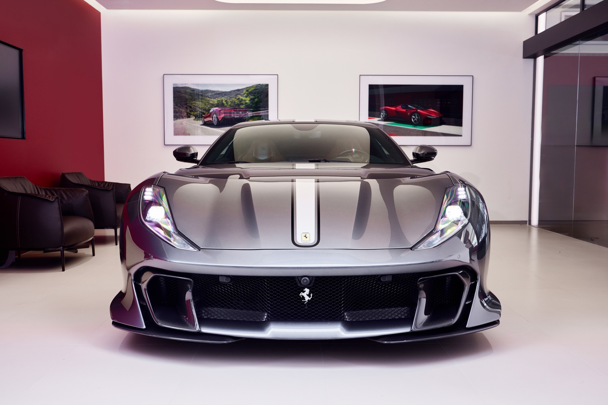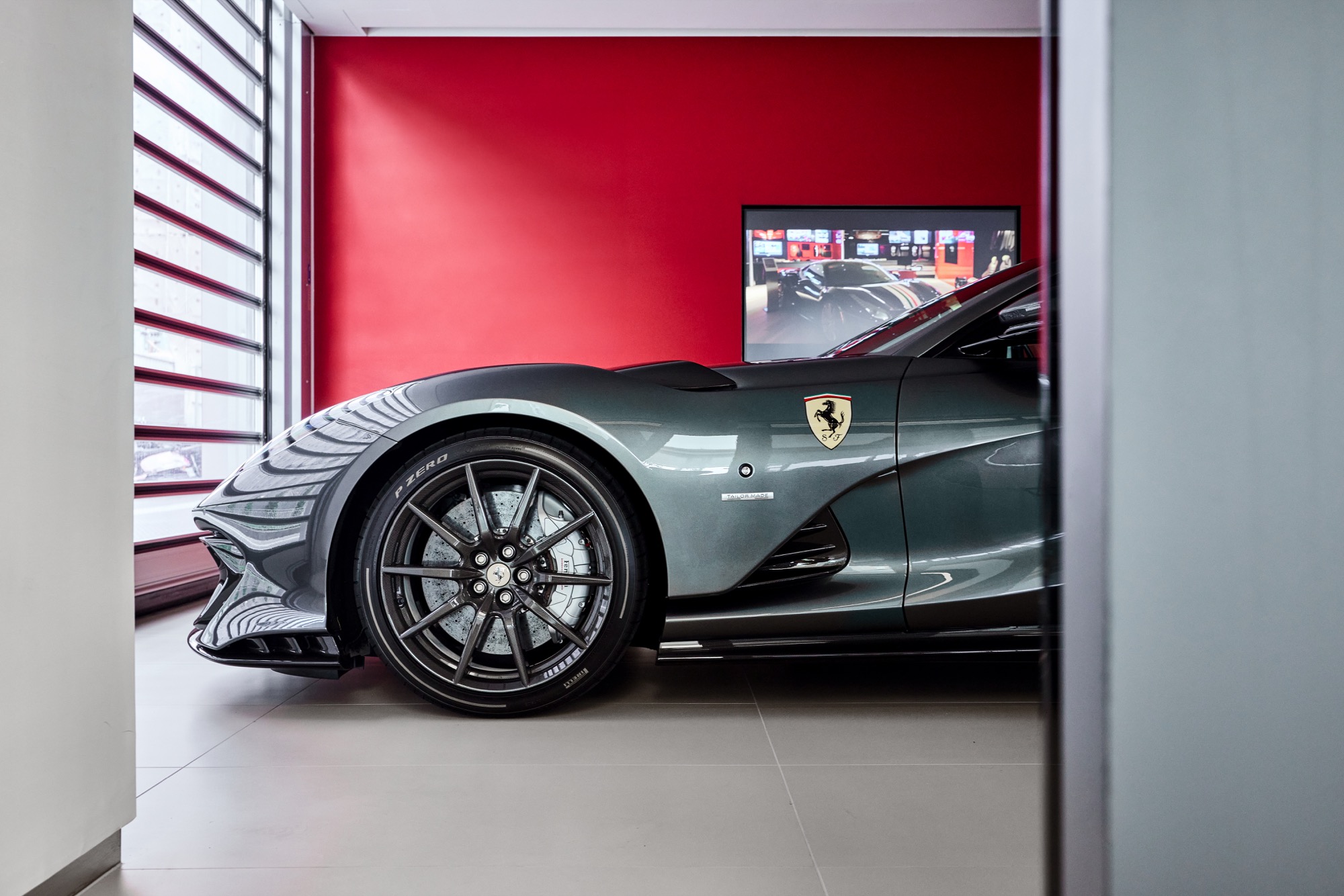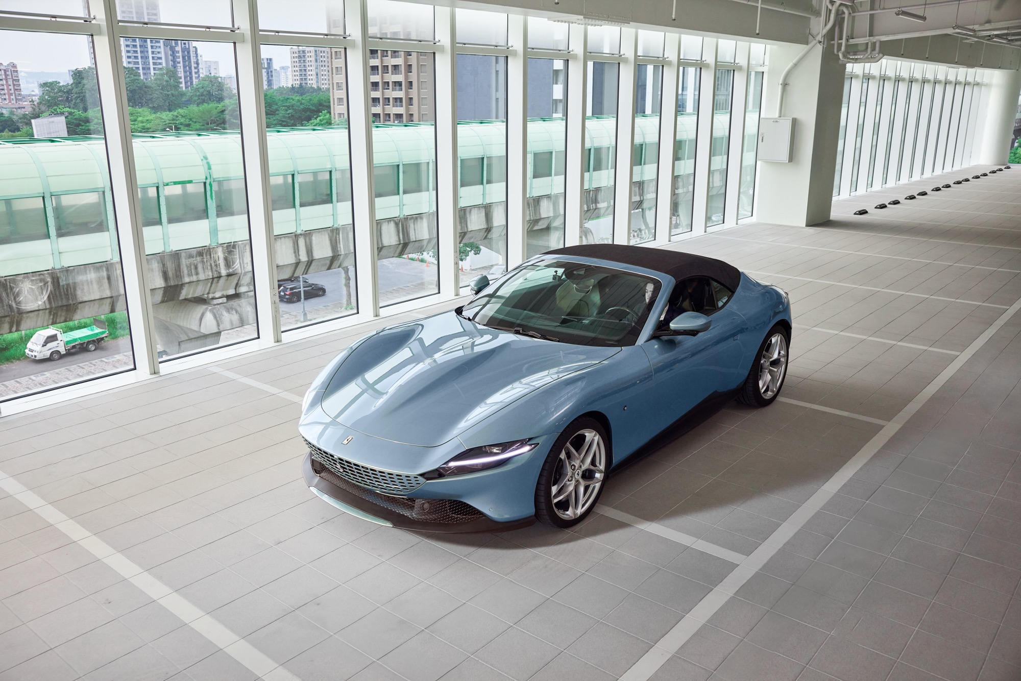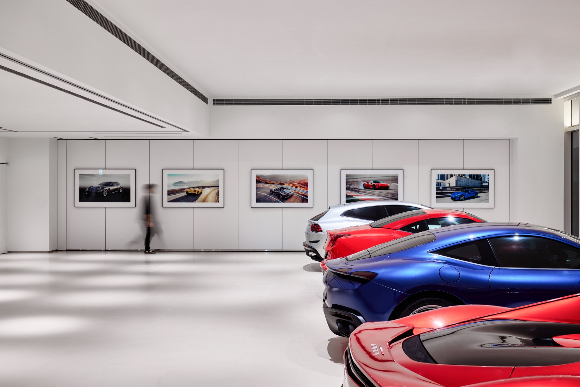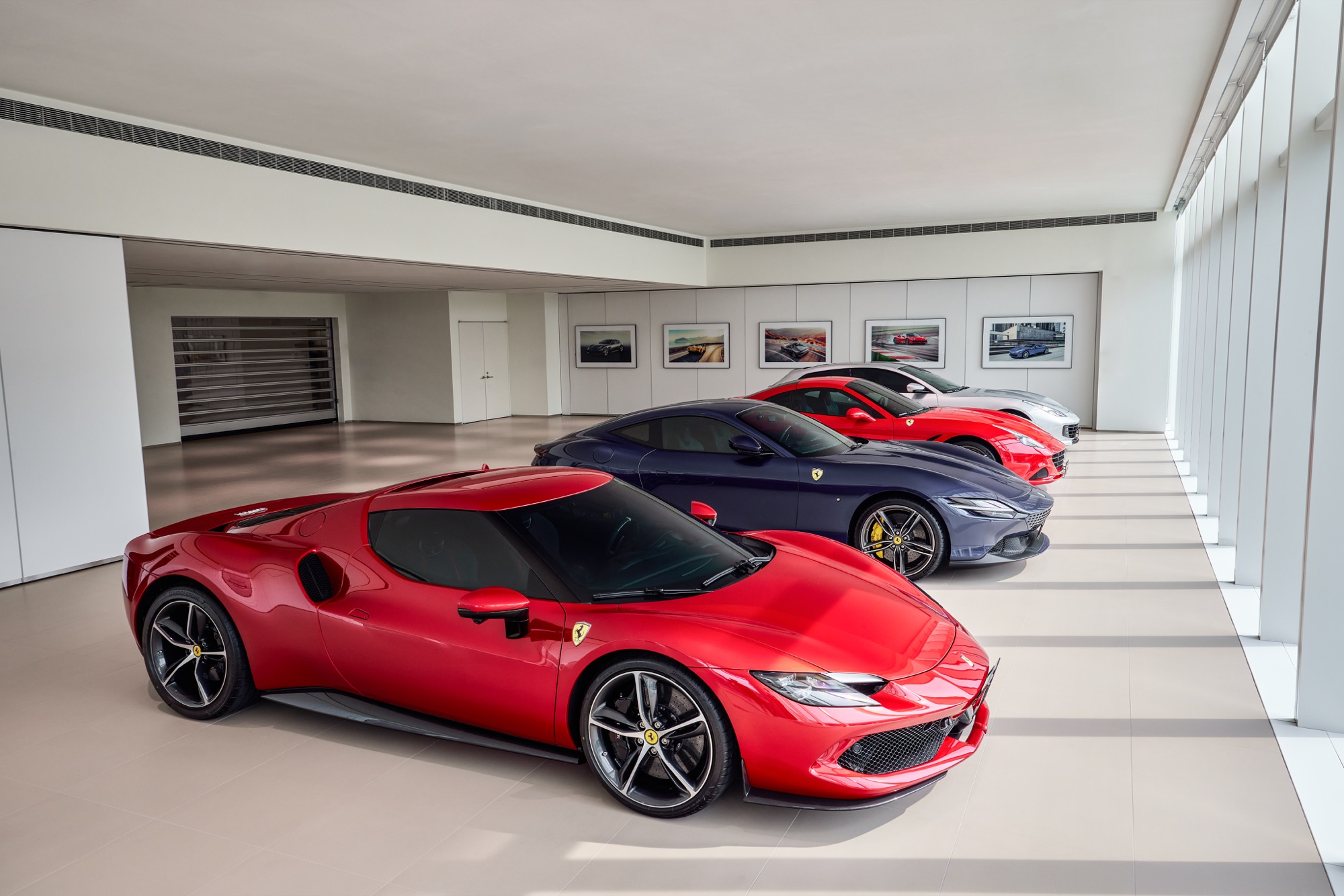 全新建築以俐落的線條勾勒出整體設計輪廓,沉穩內斂的灰色系外觀,搭配來自義大利原裝的頂級家俱及設備,完美襯托來自義大利超跑領導品牌Ferrari的奢華與細膩。在建物規劃上,除了寬裕且通透的車輛展示區、個性化選配區與奢華的客戶休息區外,於二樓更打造獨一無二的空間,透過一字排開的歷代Scuderia Ferrari F1戰駒模型與F1賽車相關展品,忠實呈現躍馬品牌源自賽道的熱情與傳奇。