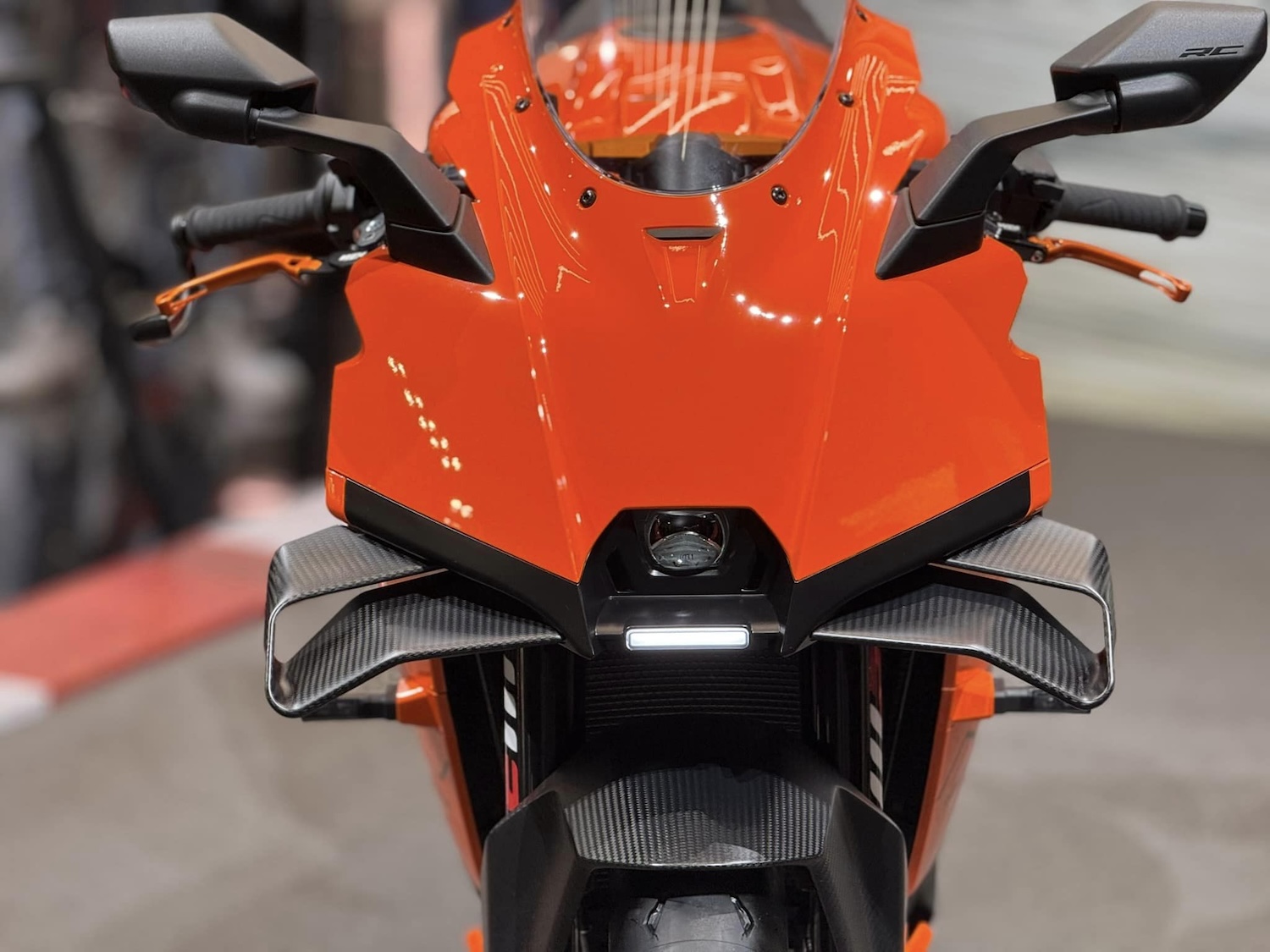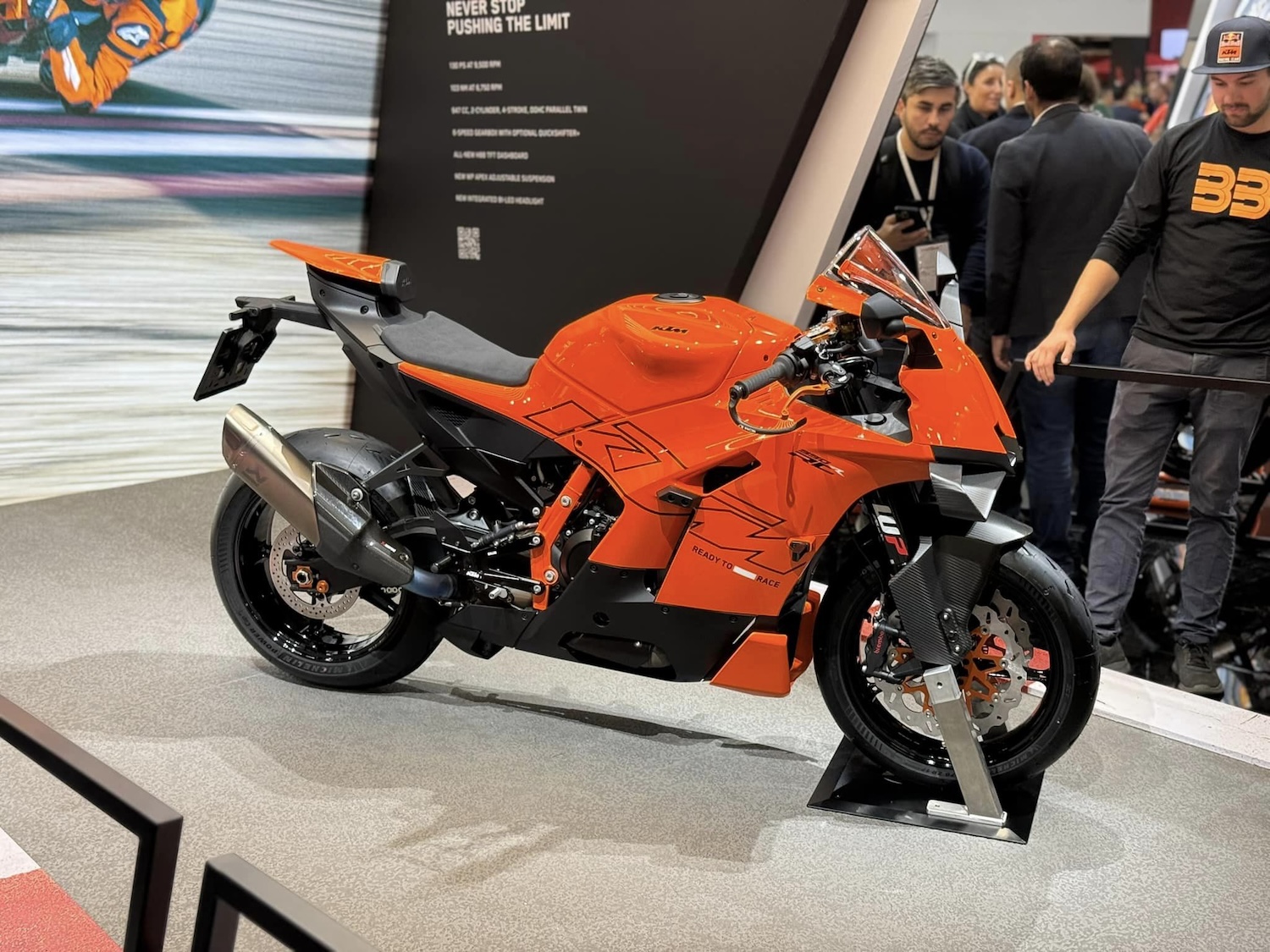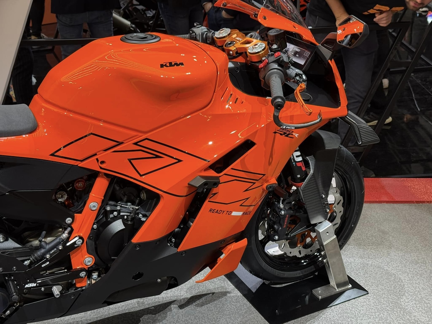 KTM 睽違五年重返 EICMA,這次回歸可說是火力全開。雖然大家的目光多半被 2025 年的 KTM 390 Adventure R、390 SMC R 以及 390 Enduro R 吸引,但這次 KTM 也帶來了全新 990 RC R——這是繼 2010 年 1198 RC 8 停產後,KTM 第一台合法上路的大排氣量仿賽。