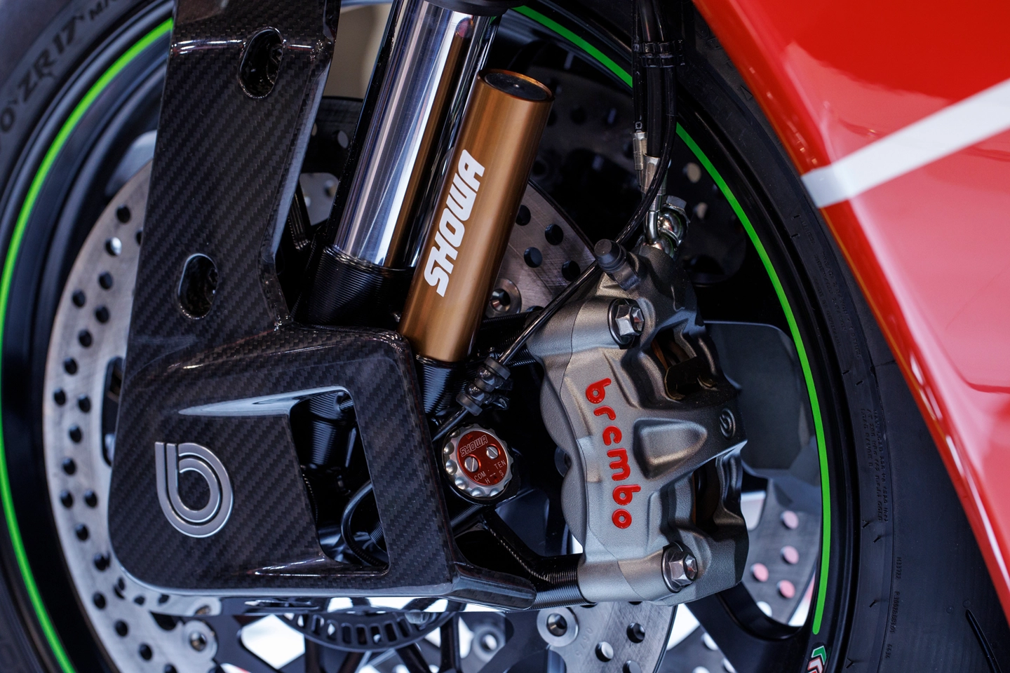 前叉由 Showa 提供的全可調倒立式前叉掌控,後避震器則為 Showa 產品,應該與 ZX-10RR 配備的 BFRC 規格相同。煞車系統則由 Brembo 提供,前輪使用一對 Stylema 卡鉗,帶來無可挑剔的制動力。