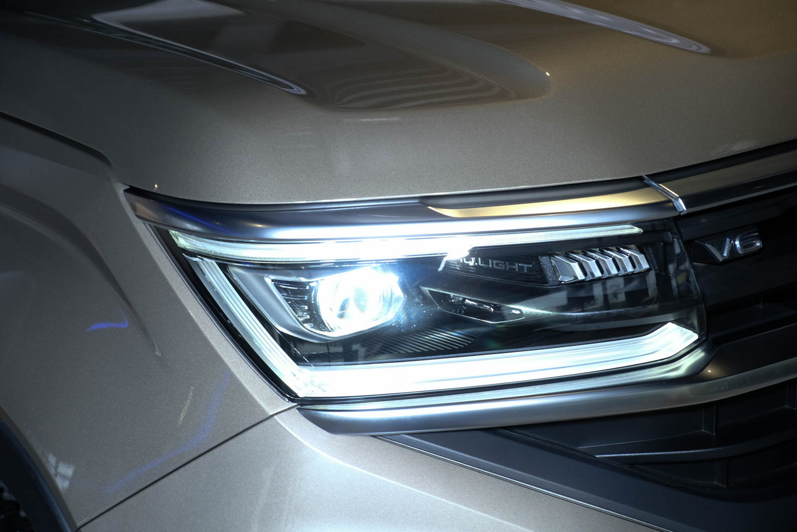 The All New Amarok 外觀造型上所強調的越野運動視覺設計,完美結合精緻越野風格與創新科技質感於一身,徹底顛覆傳統越野皮卡粗獷有餘卻精緻度不足的刻板印象。車頭採用專屬 X 設計的消光灰前保桿,運用全新「X」字樣的設計語彙,將水箱護罩、前氣壩及 IQ. Light 矩陣式 LED 頭燈包覆於「X」整體線條之中,並透過消光灰防刮材質,營造出全新世代 Amarok 對比強烈的視覺感受。