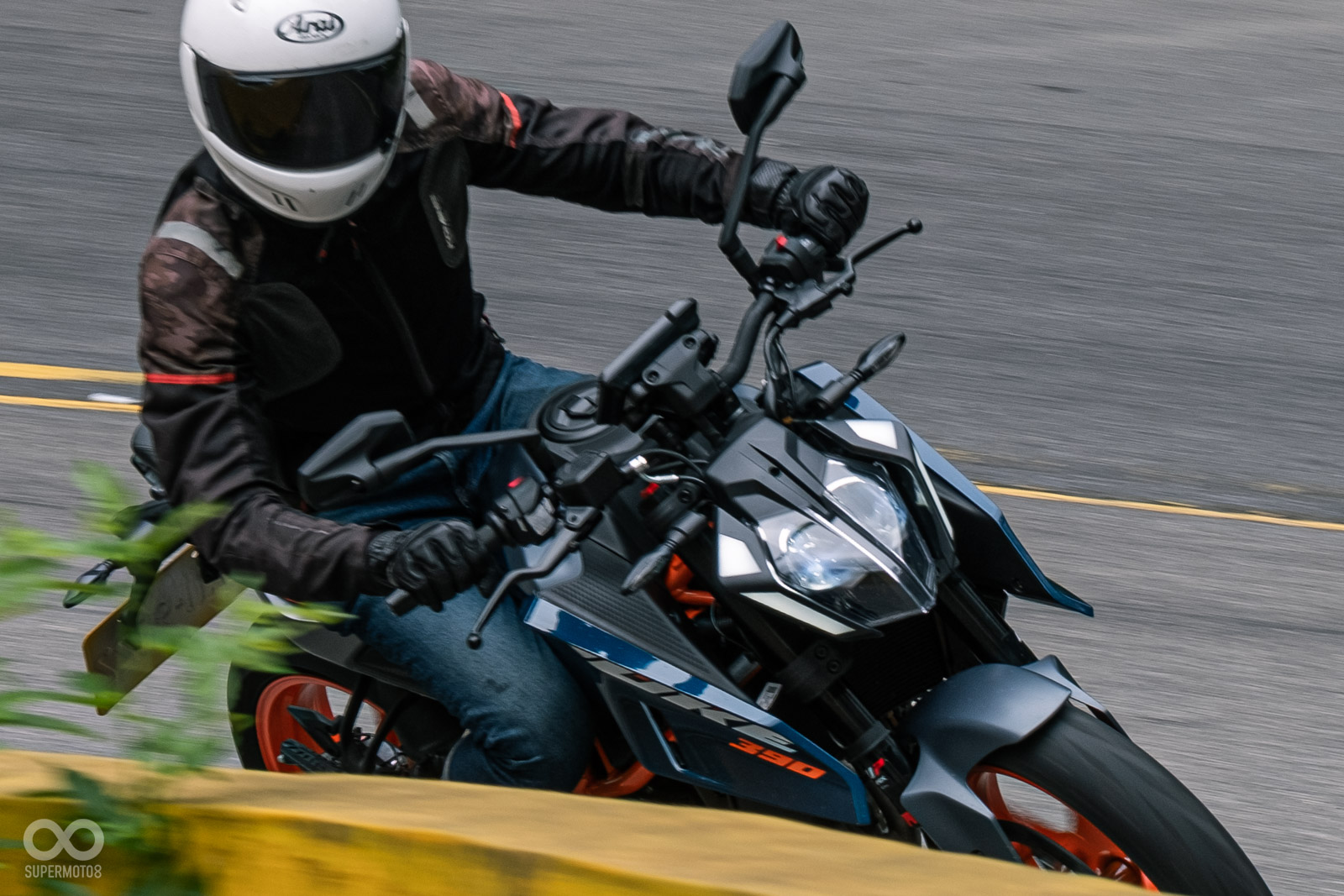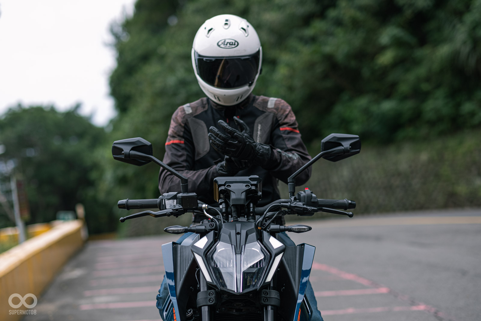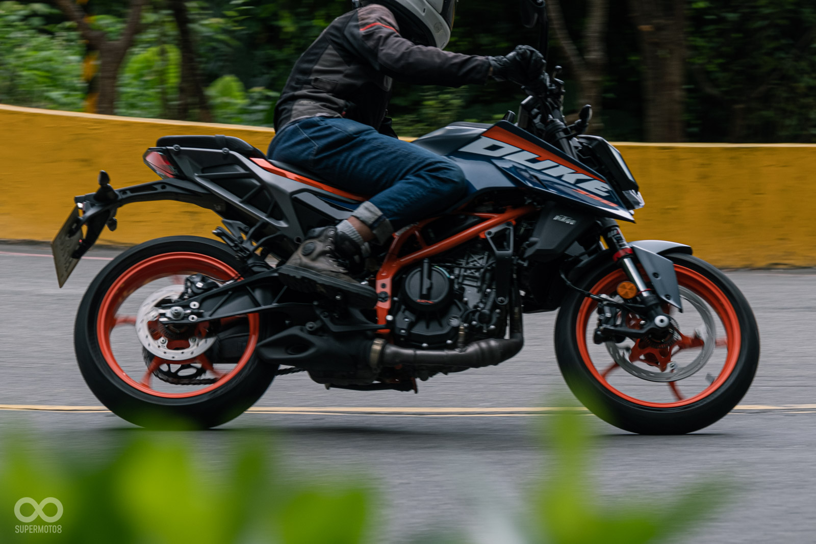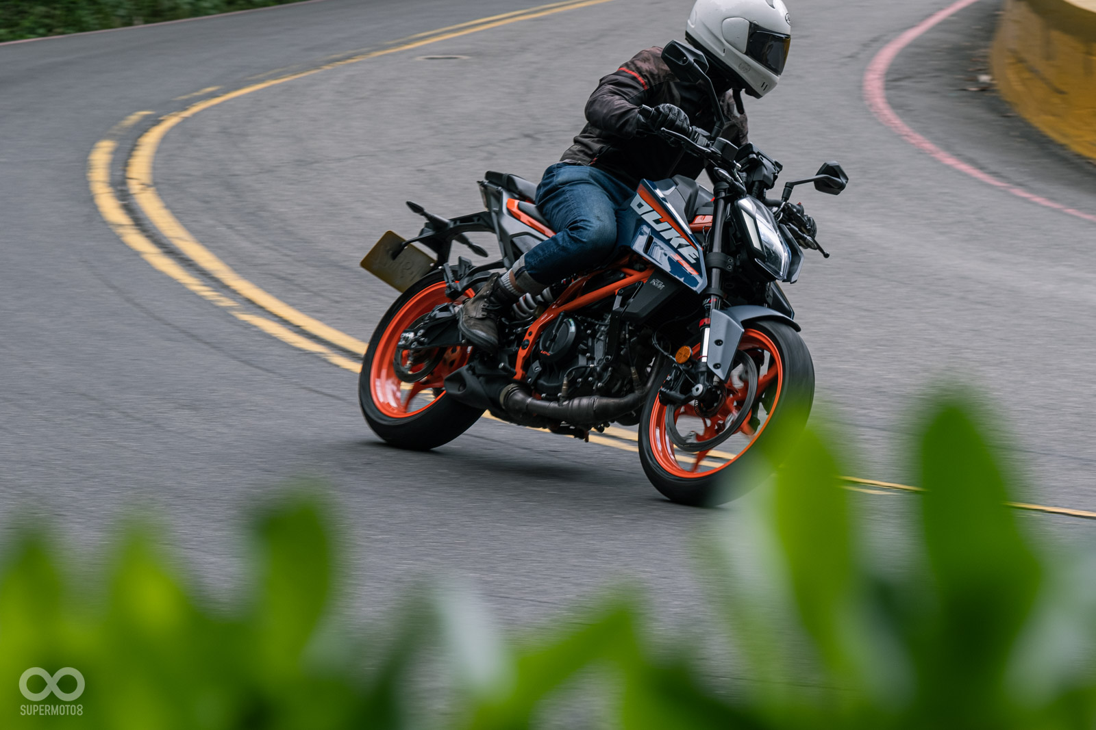 轉入彎道,390 DUKE更令我驚豔,首先是超級靈活的動態表現面對連續的左右彎山路,這台165公斤的黃牌街車可是輕鬆應付,改款後讓我覺得前端支撐性變得更優異,即便稍微帶點煞車依舊可以保有車頭的自由感,可以快速切入彎道中,對於筆者73公斤的體重來說,彎中懸吊的支撐性完全無庸置疑,而且你別忘記這組避震器還是前後可調的高級配備。