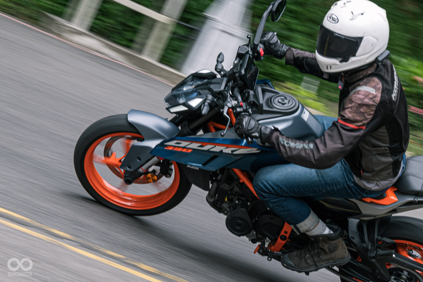 而在規格部分發福的車重數字,這個擔憂會在你發動入檔開始騎乘後直接消失,對於喜歡390車系那有如輕檔車的操控感的騎士,你可是完全不用擔心。而引擎經過升級後雖然動力提升不大,但最有感的點在於氣變得更長,約莫6,000轉後就可以感受到明顯的動力湧現,切入賽道模式後更是有相對明顯的推力一路帶你往高轉速紅線去。搭配選配的進退快排、熱血敏感的高轉反應,或許單缸聲浪可能沒有像多缸車那樣有如環繞劇院般激情,但整體樂趣絕對不輸其他雙缸日系對手。