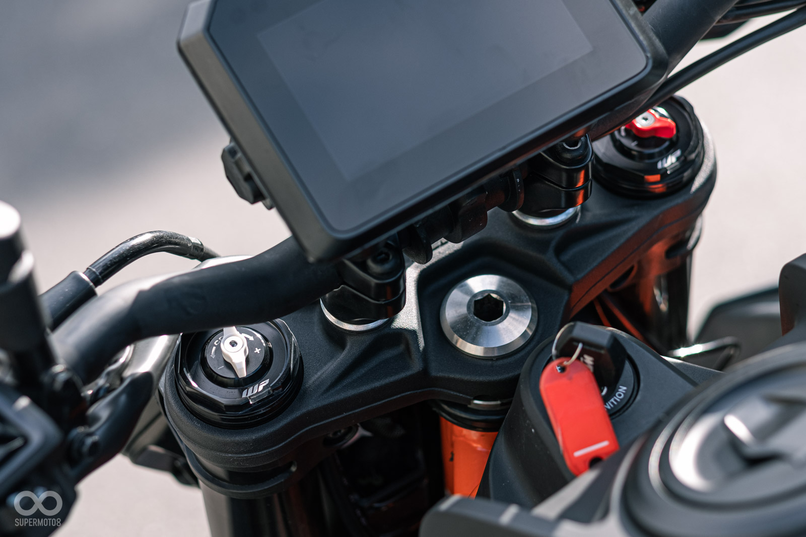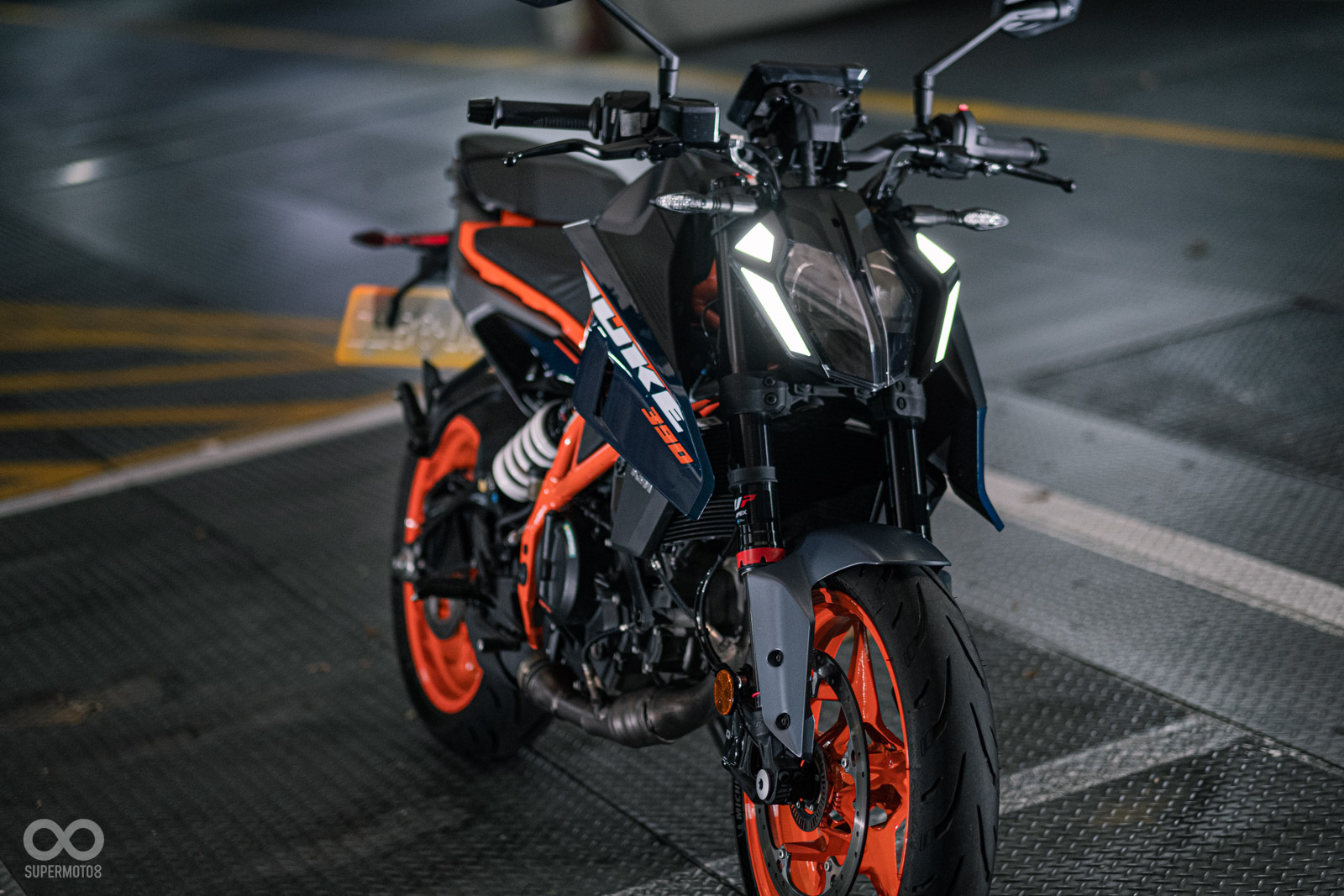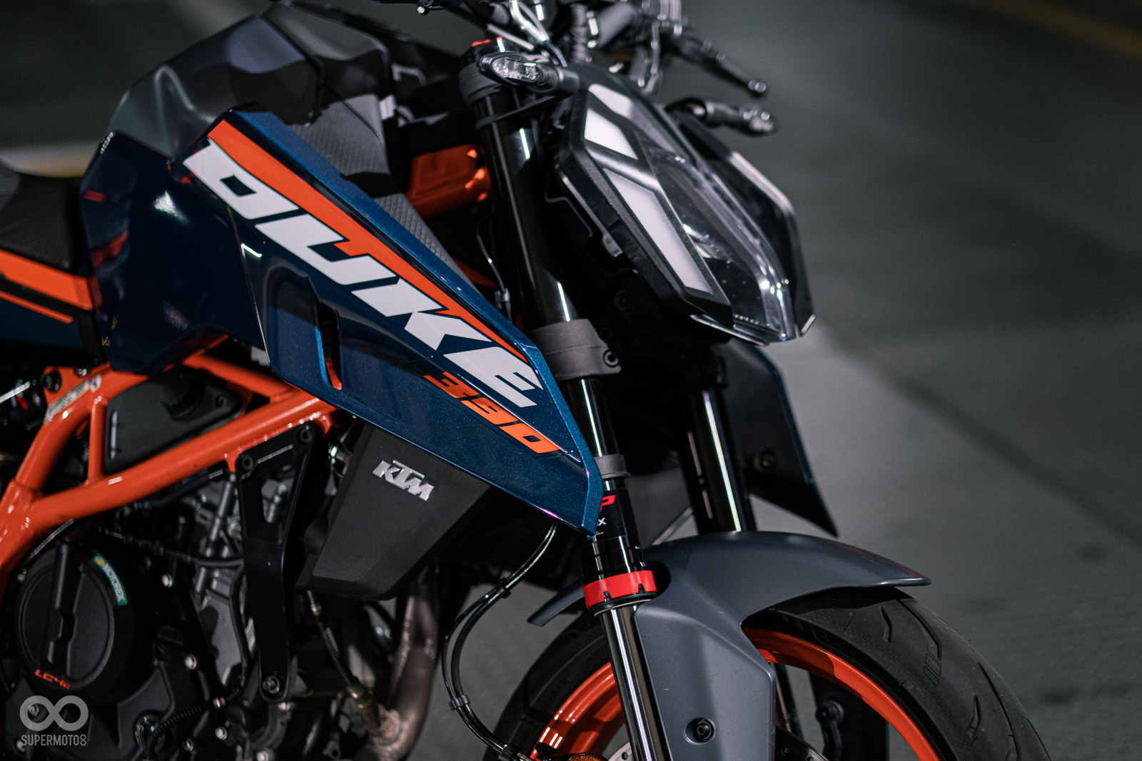 全車甚至還擁有新開發的鋼管車架,亮橘色的塗裝車架有如血管班盤據車身,比起其他同級距的對手來說KTM確實在外觀上相當有一套。