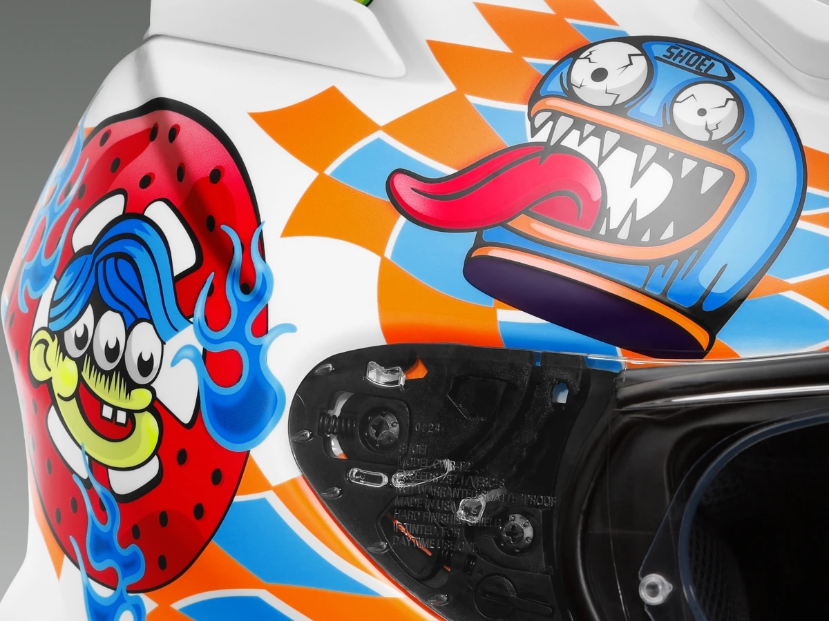 這款頭盔的設計延續了 2021 年 5 月推出的『Z-8 MURAL』的藝術風格。『YAGYO』這個名字取自「百鬼夜行」,這是一個源於日本民間傳說的概念,象徵著一群妖怪在夜晚成群結隊地出沒。SHOEI 透過這樣的意象,將摩托車零件幻化為妖怪,以充滿創意的方式來致敬摩托車文化中的那份自由、叛逆和無拘無束。