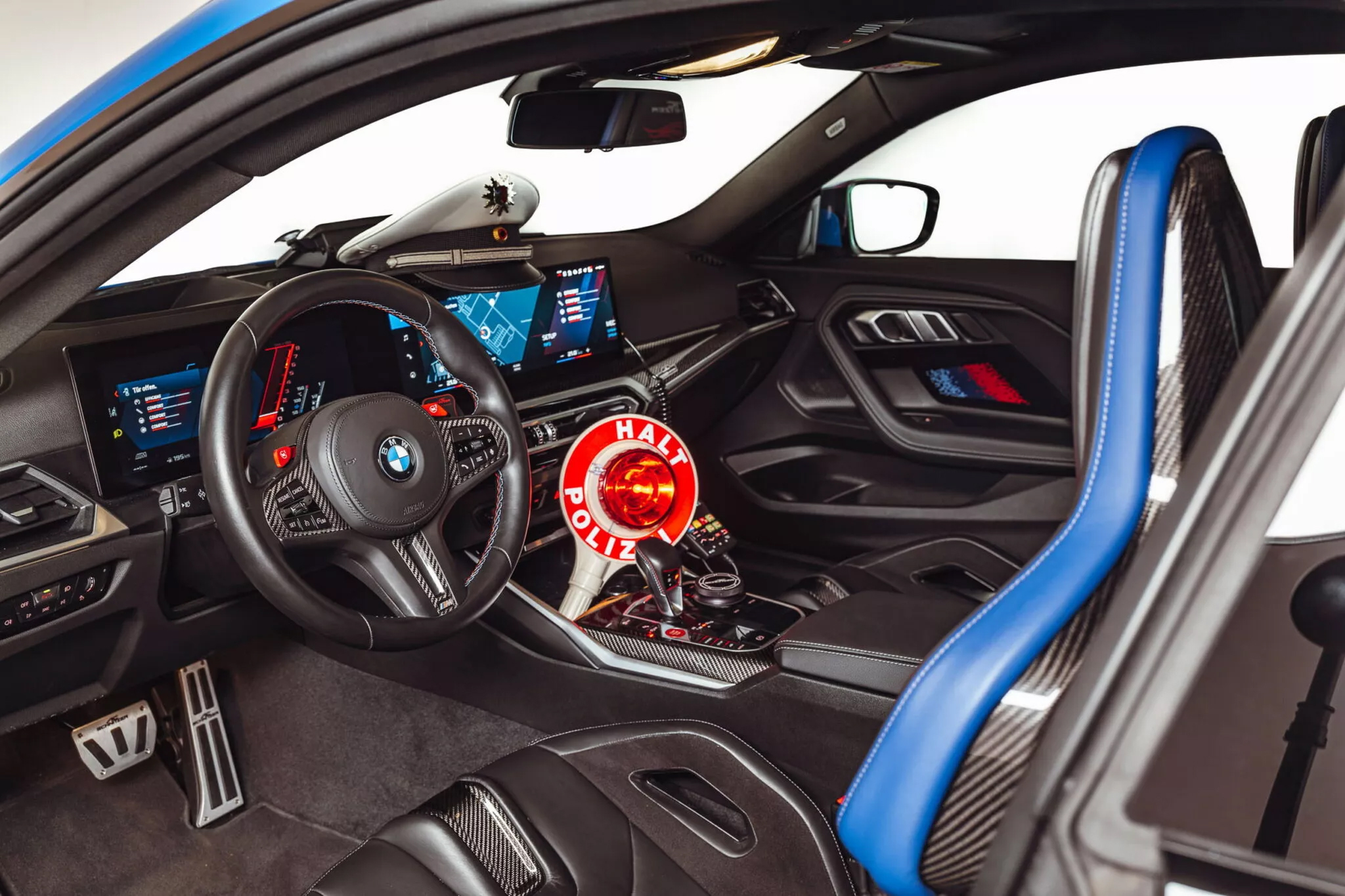 內裝部分則以細節見長,加入鋁製的換檔撥片、踏板、鑰匙扣及iDrive控制器,並在頭枕上繡上AC Schnitzer的標誌,展現出細膩的設計感。由於是展示用車,車內並未安裝警用無線電或其他執法設備。